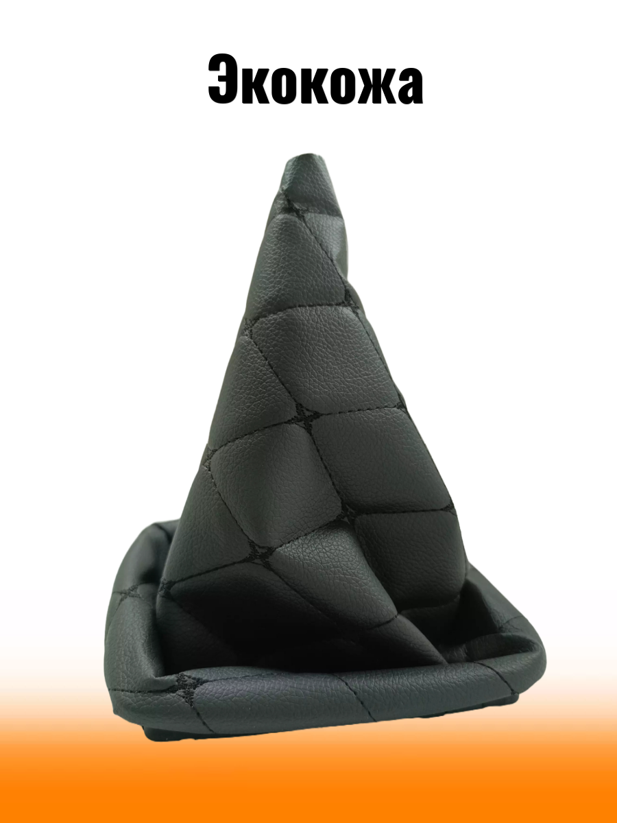 Чехол коробки переключения передач КПП на ВАЗ-2170 Лада Приора (Lada Priora) черный с оранжевой строчкой "ромб-бабочка"