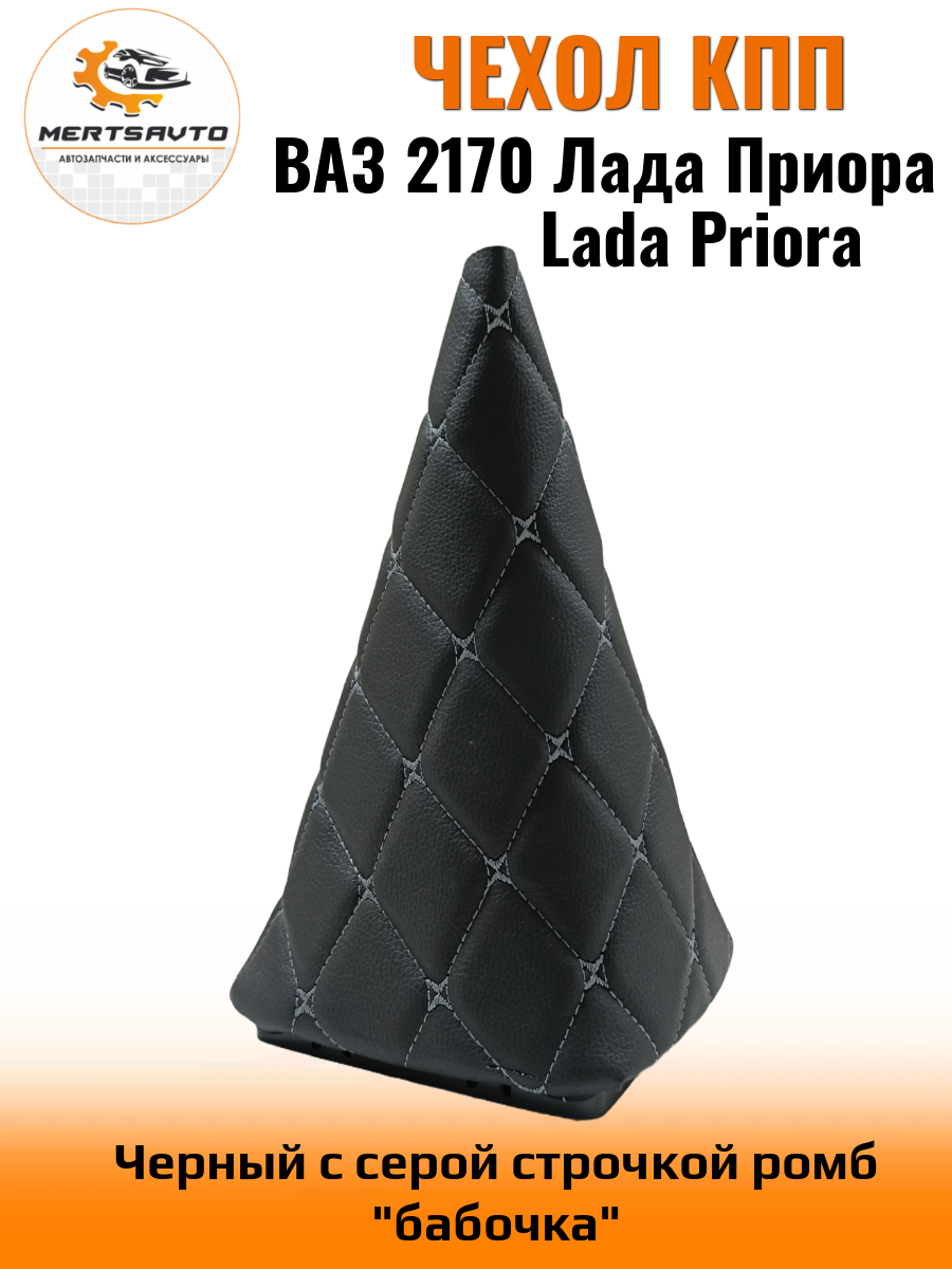 СохранитьЧехол коробки переключения передач (КПП) на ВАЗ-2170 Лада Приора (Lada Priora) - черный с серой строчкой ромб "бабочка" интересное: