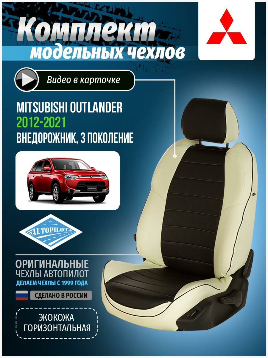 Купить Чехлы на сиденья "АВТОПИЛОТ" из экокожи для Mitsubishi Outlander III с 12г. Белый, Черный. mi-ou-o3-bch-e