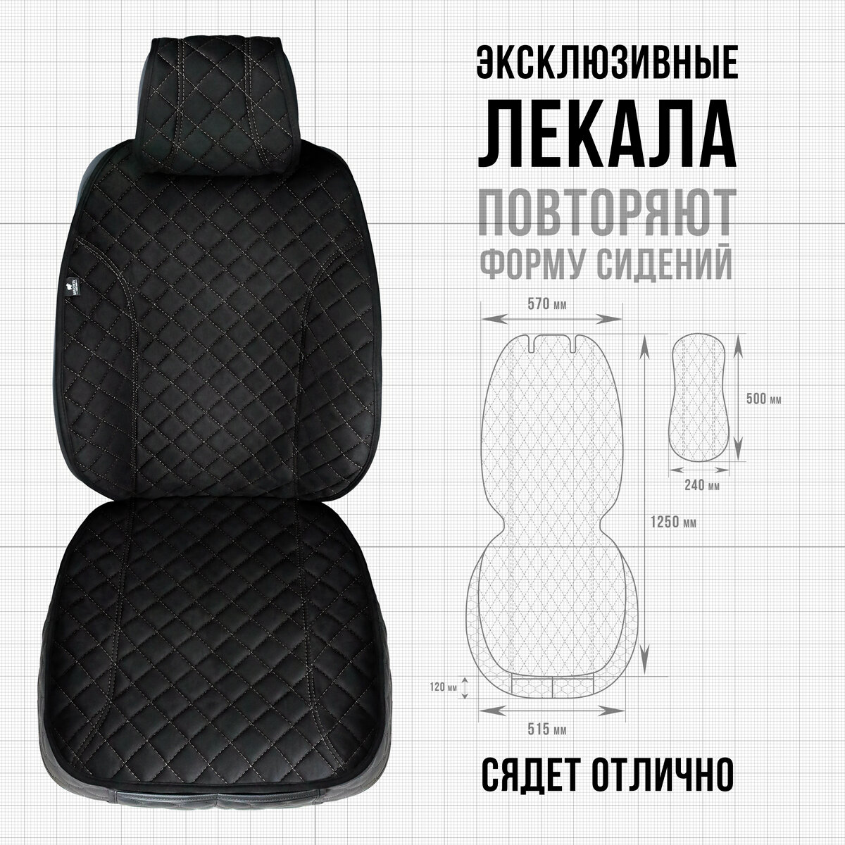 BARASHKOV/ Накидка из алькантары на переднее сиденье автомобиля. Модель XL/ Черный, бежевая строчка