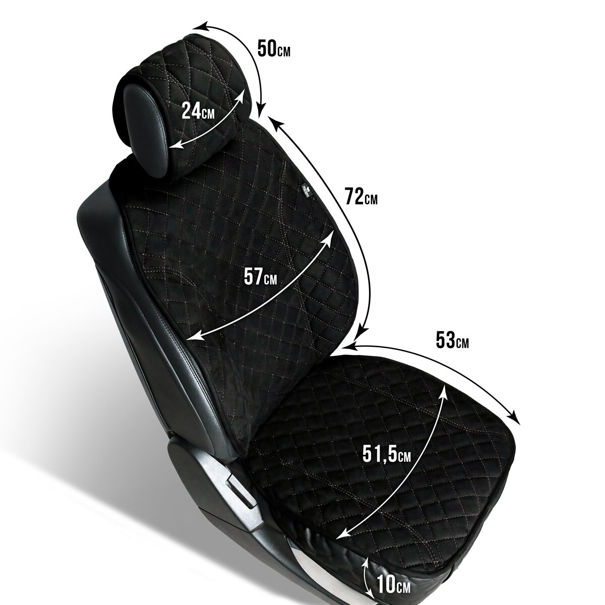 BARASHKOV/ Накидка из алькантары на переднее сиденье автомобиля. Модель XL/ Черный, белая строчка