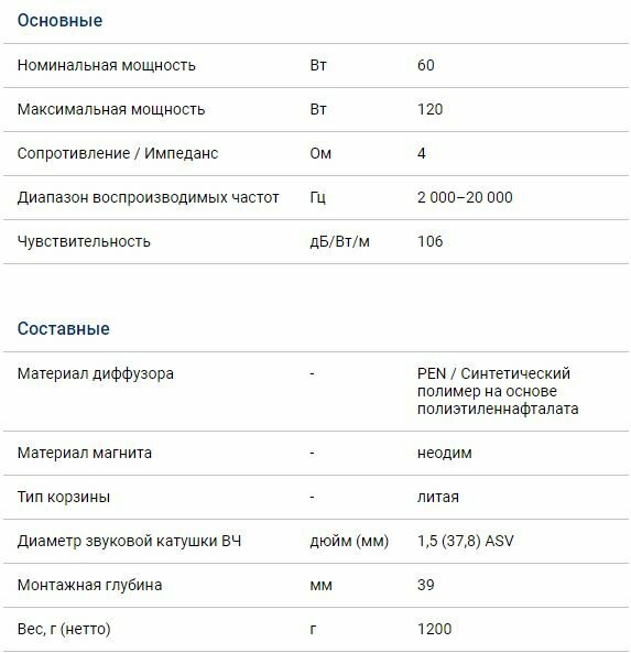 | Диапазон воспроизводимых частот | 2000 - 20000 Гц |