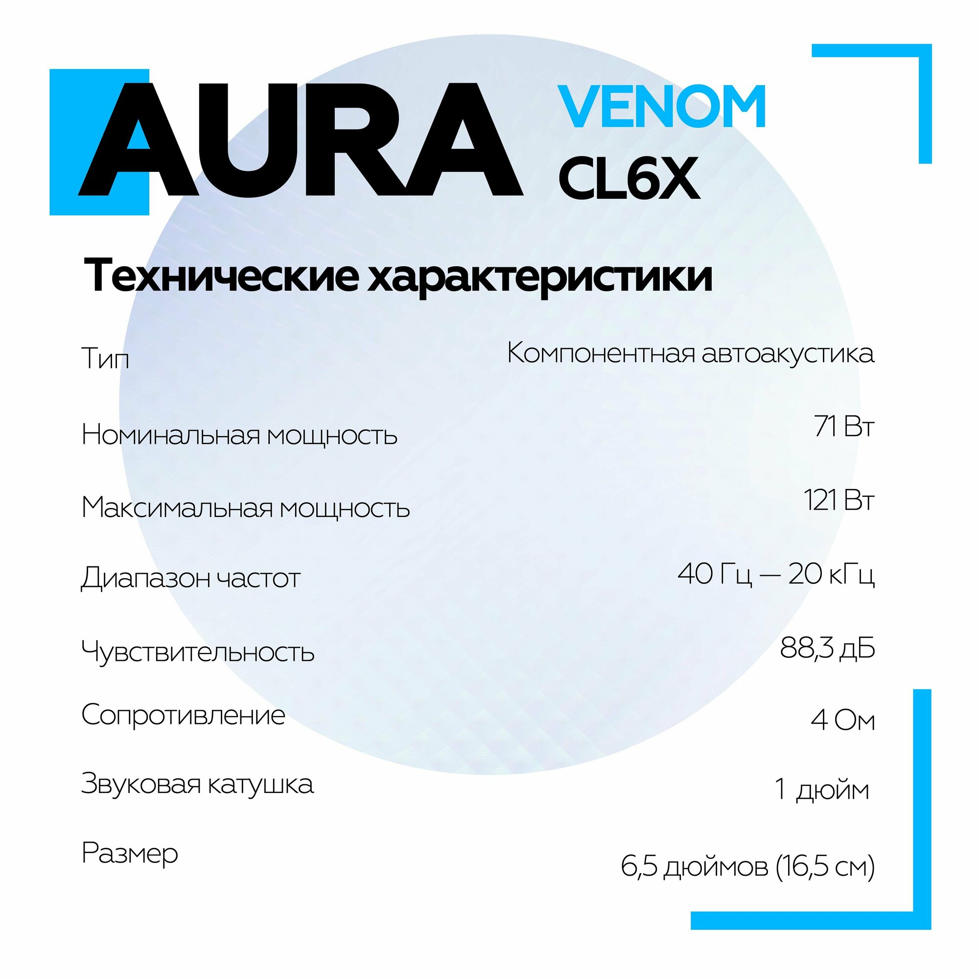 AURA VENOM-CL6X Колонки коаксиальные 6" (16см) 71Вт AURA интересное: