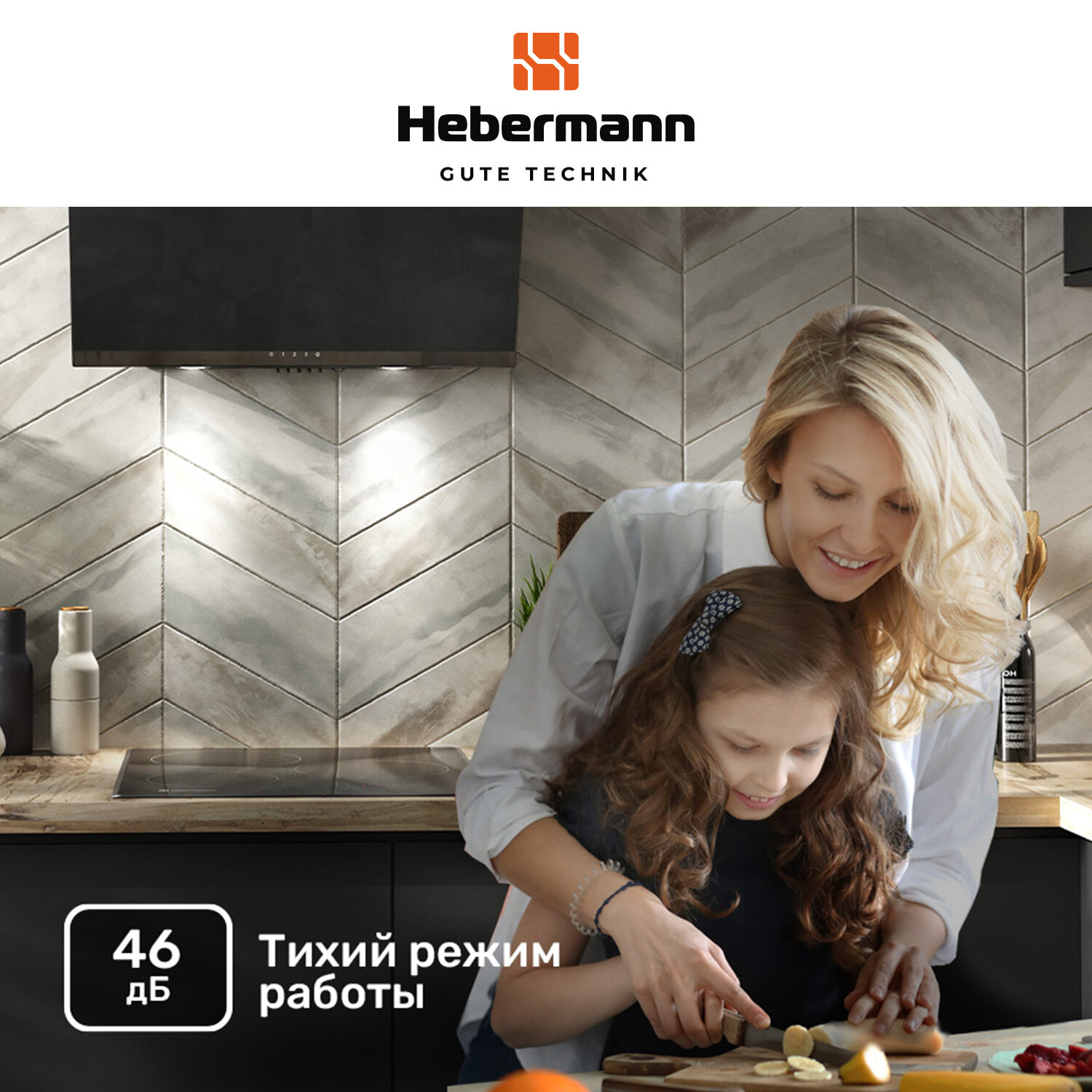 Наклонная кухонная вытяжка Hebermann HBKH 60.4 B, 60 см, черная, окрашенная сталь, стекло, производительность 700 м³/ч интересное: