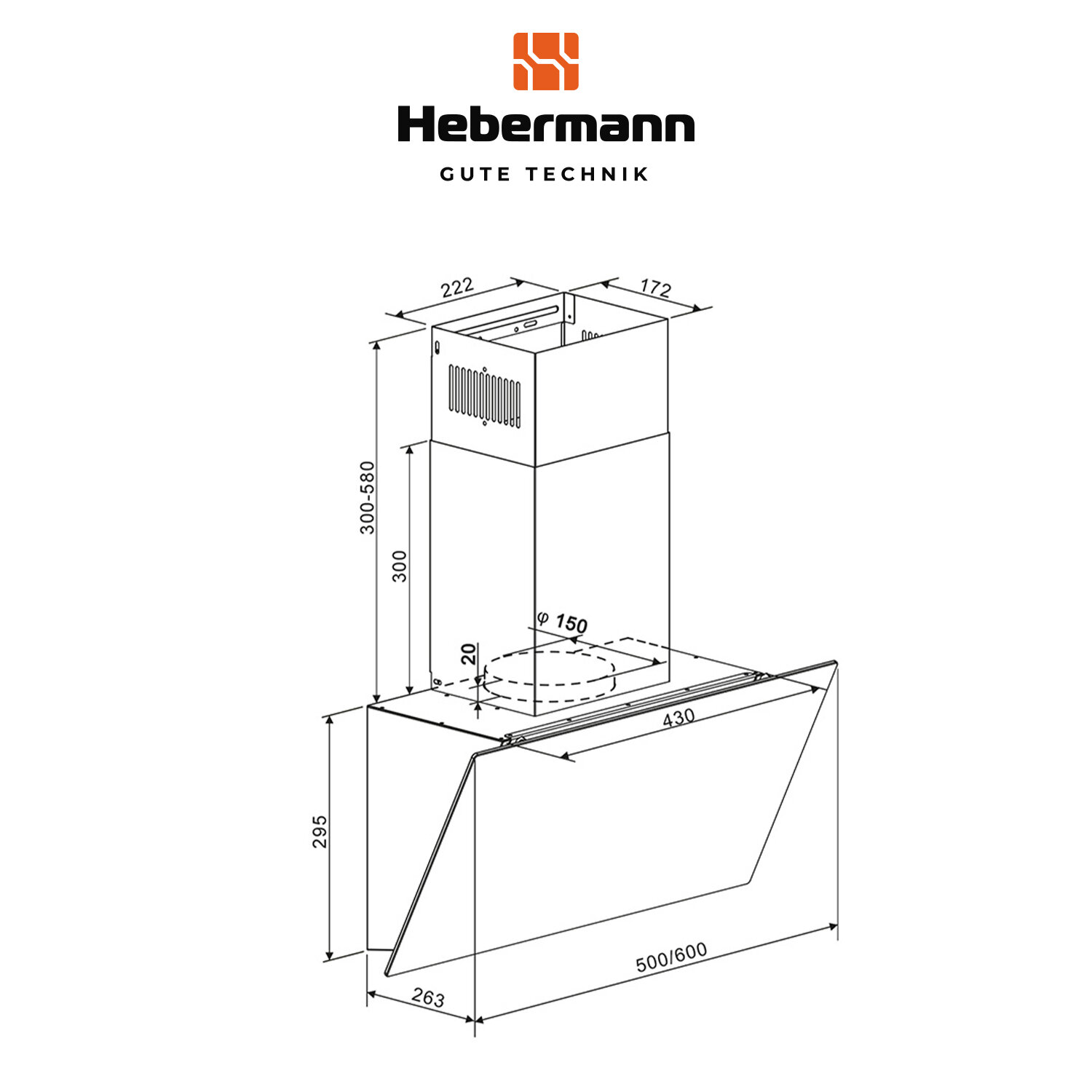 Наклонная кухонная вытяжка Hebermann HBKH 60.4 B стекло