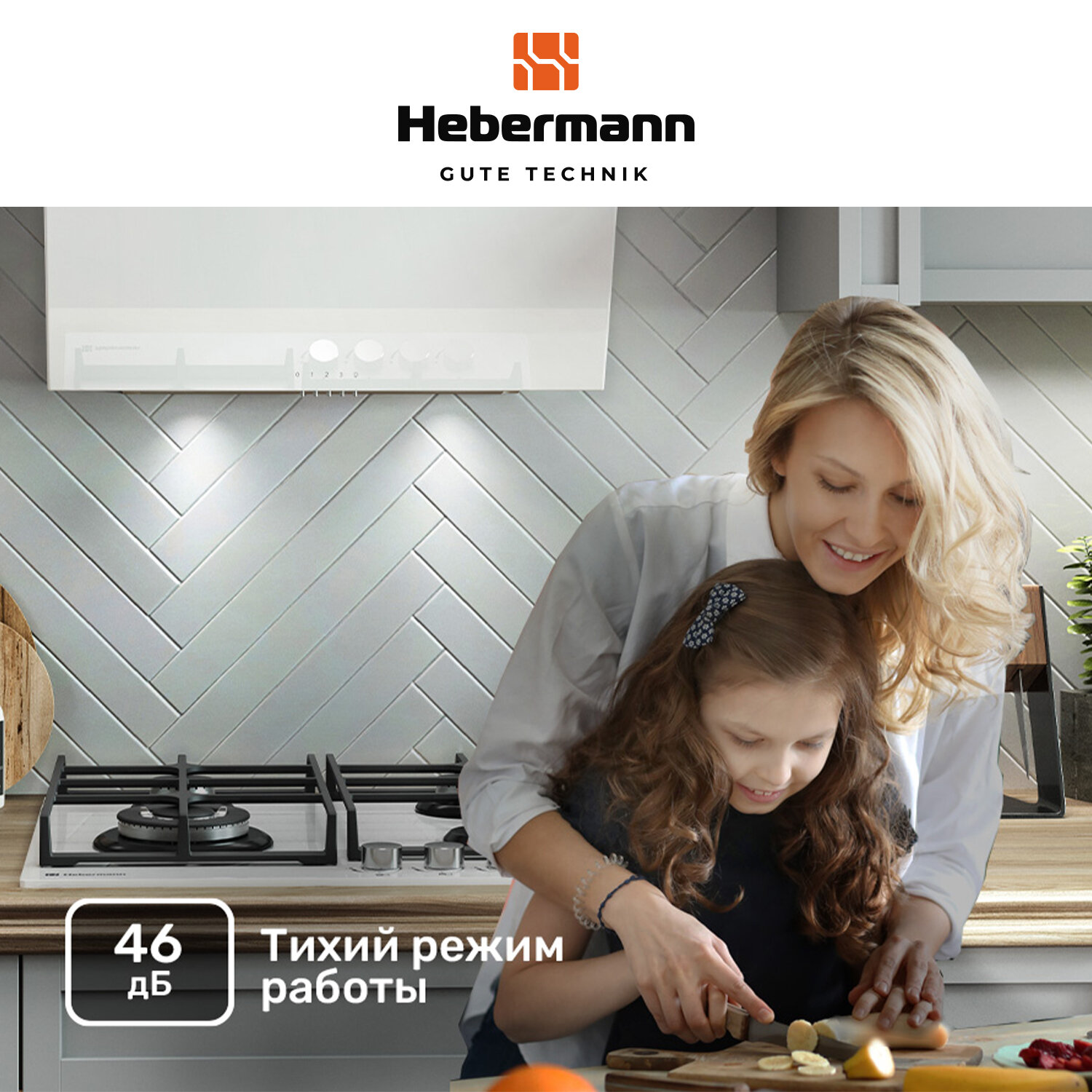 Наклонная кухонная вытяжка Hebermann HBKH 60.4 W, 60 см, белая, кнопочное управление, LED лампы, отделка- окрашенная сталь, стекло интересное: