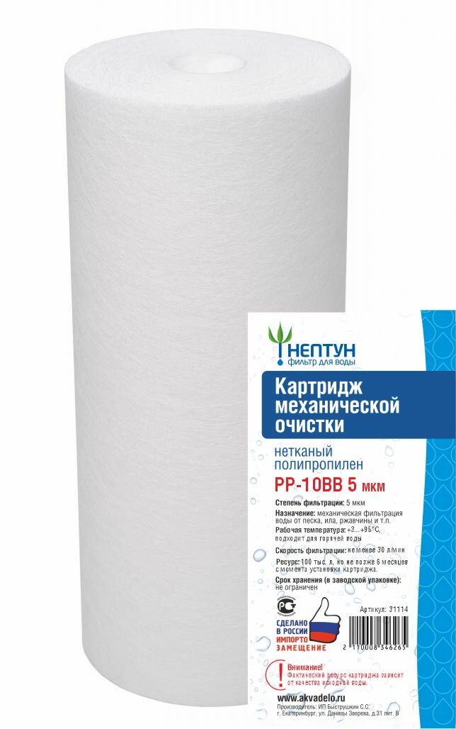 Картридж BB10 PP-5 мкм, полипропилен Нептун интересное: