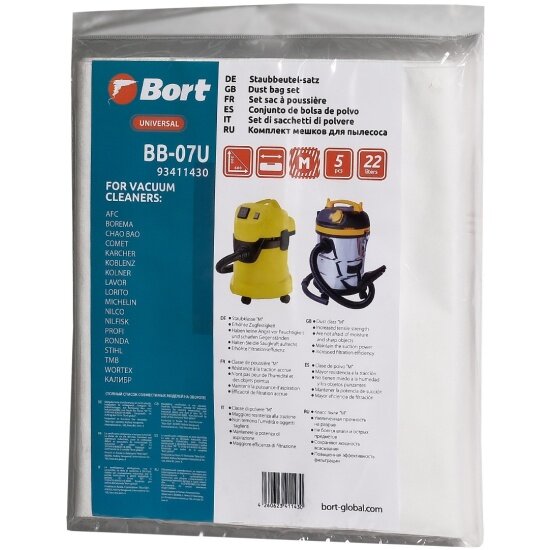 Мешки для пылесоса Bort BB-07U (для пылесоса BSS-1215-P), 5 штук интересное: