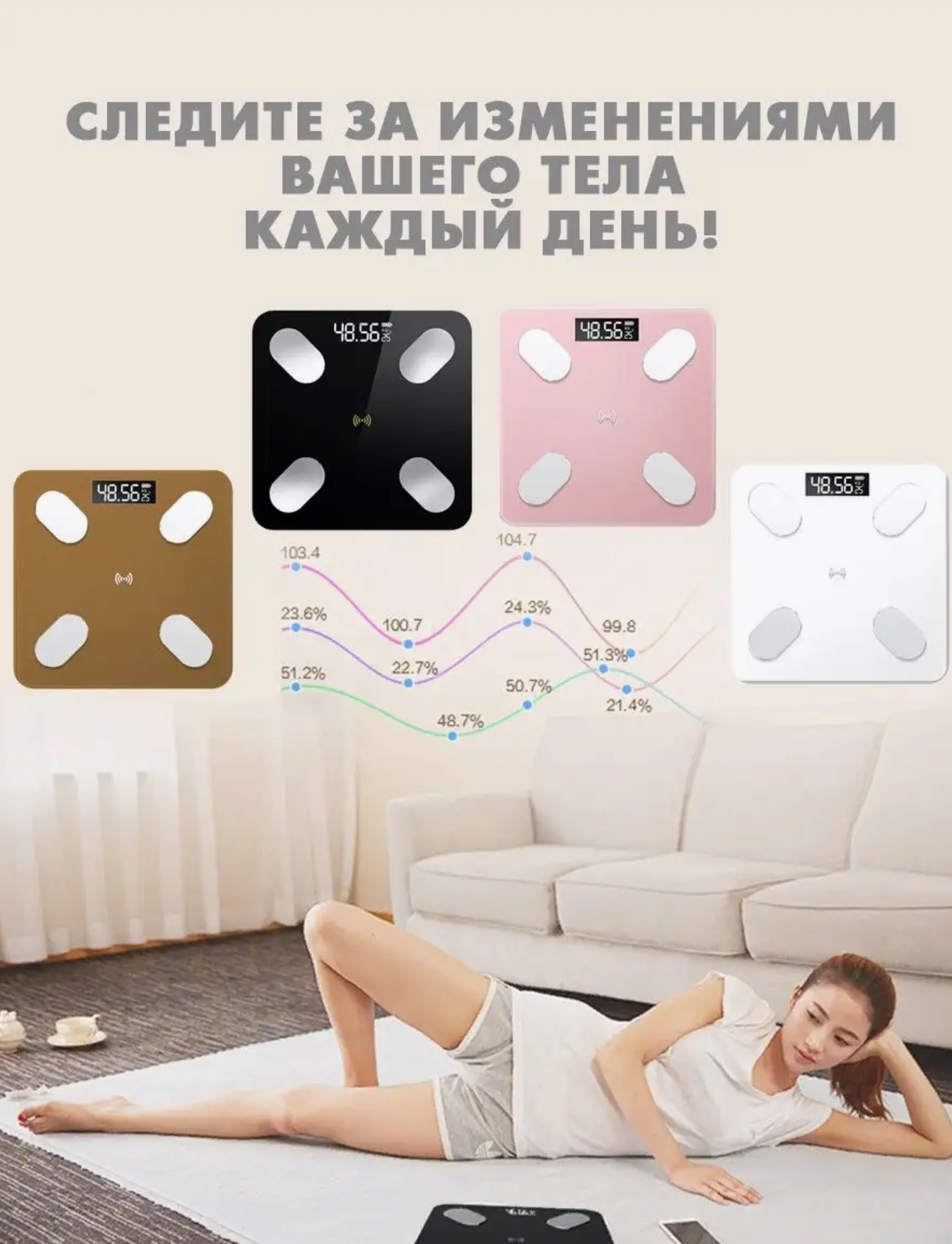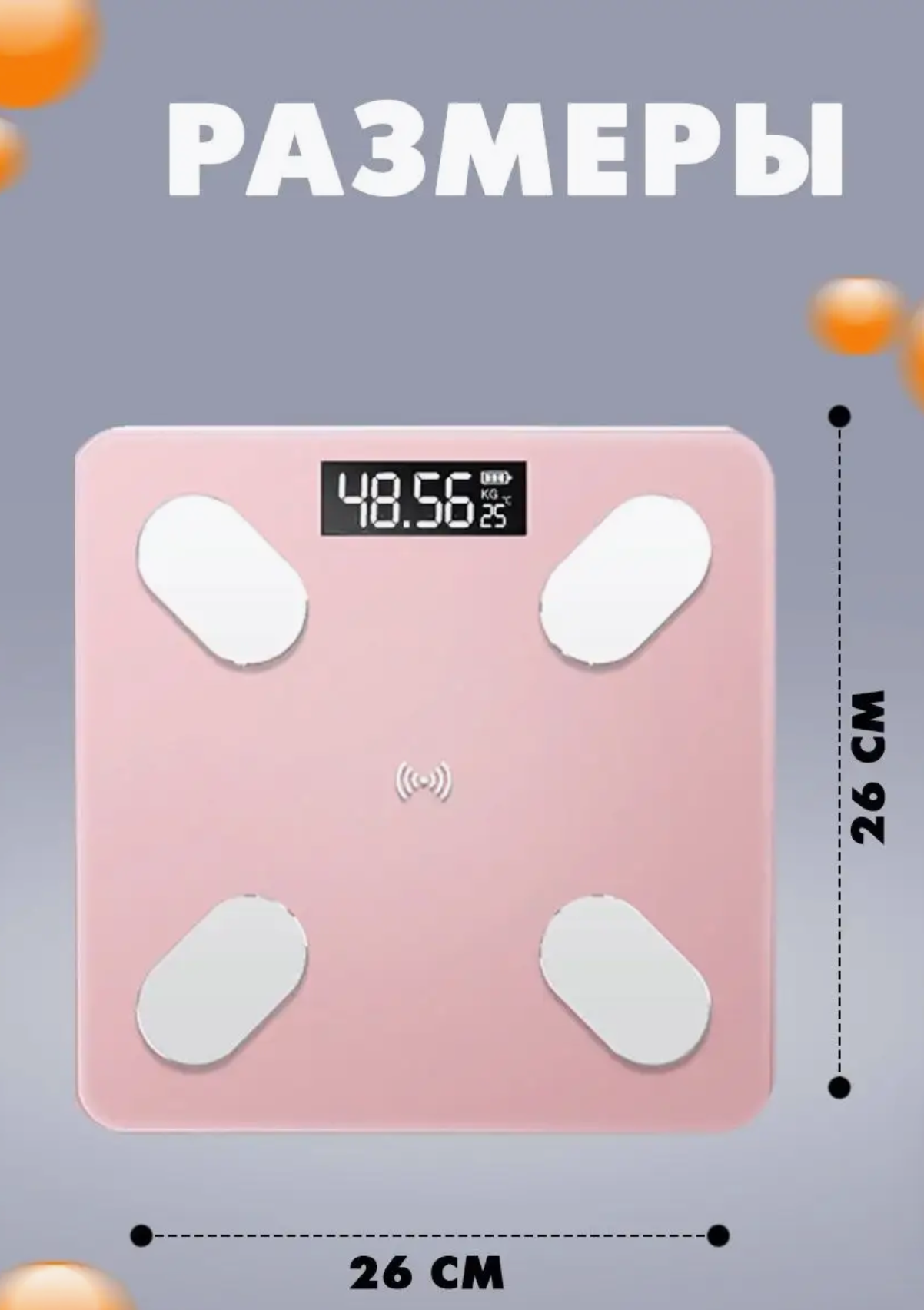 Напольные умные весы с расчётом 12 показателей качества тела совместимые для Android, IOS розовые без рисунка интересное:
