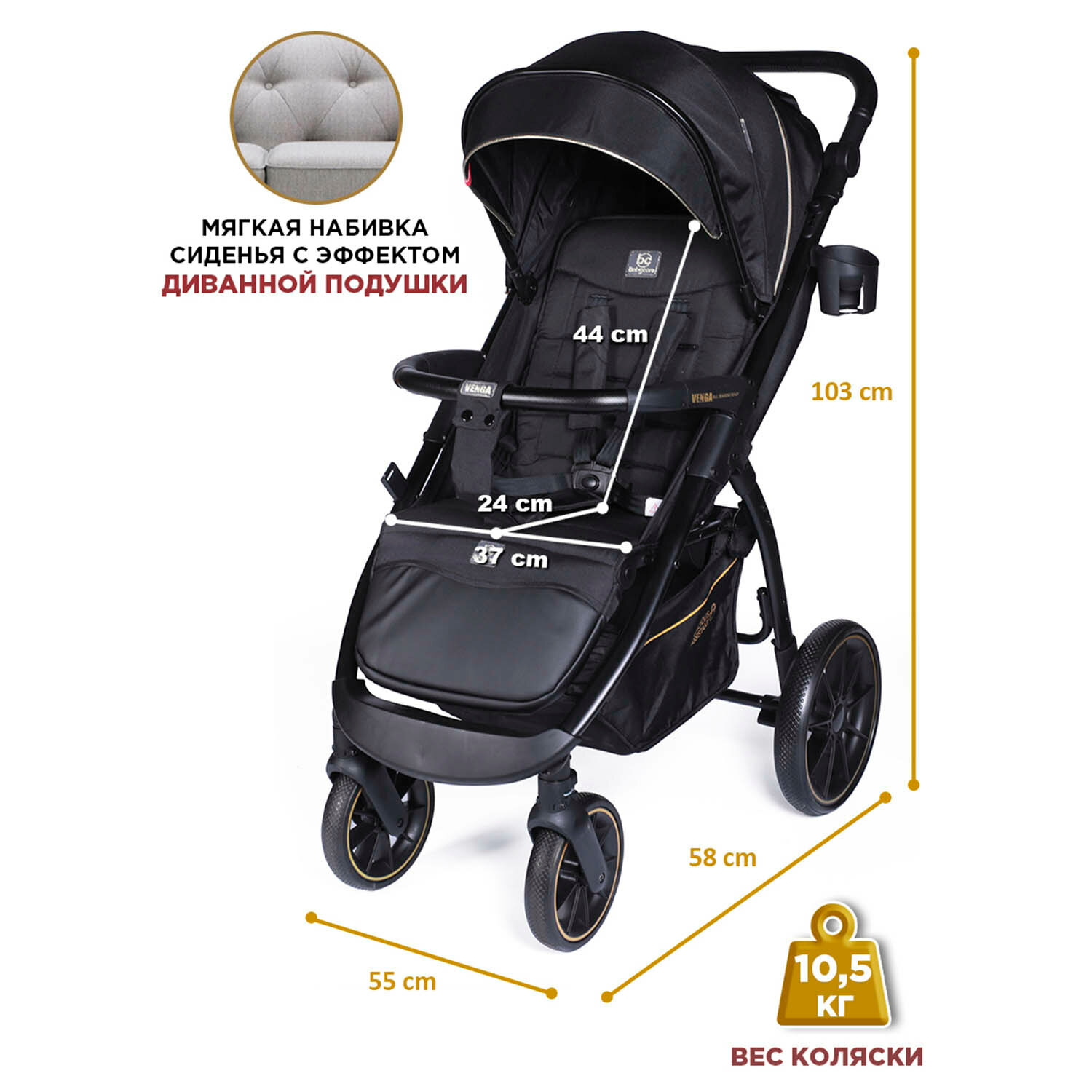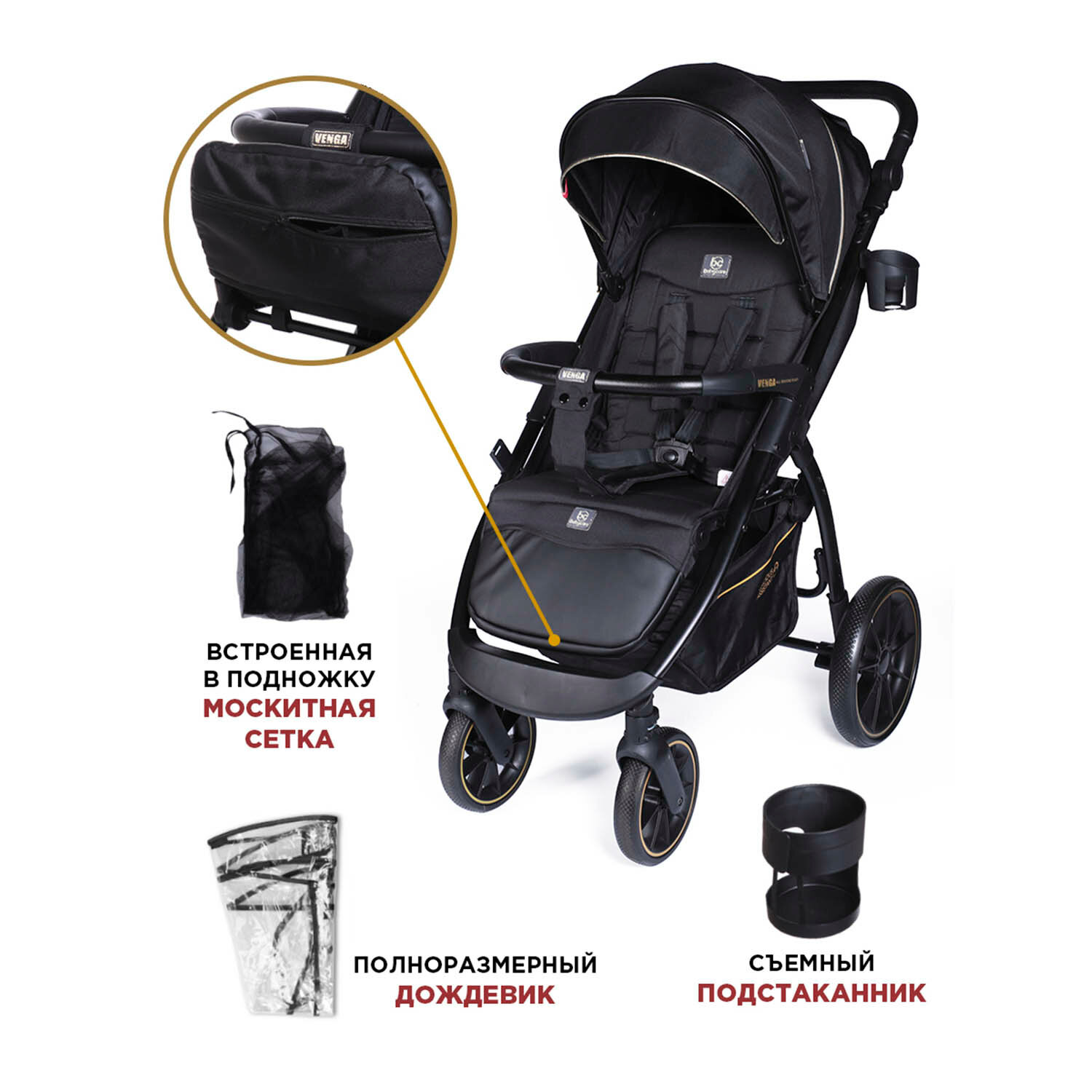 Коляска детская прогулочная Venga, всесезонная с накидкой для ног, большим капюшоном, полная комплектация, Babycare, черное золото