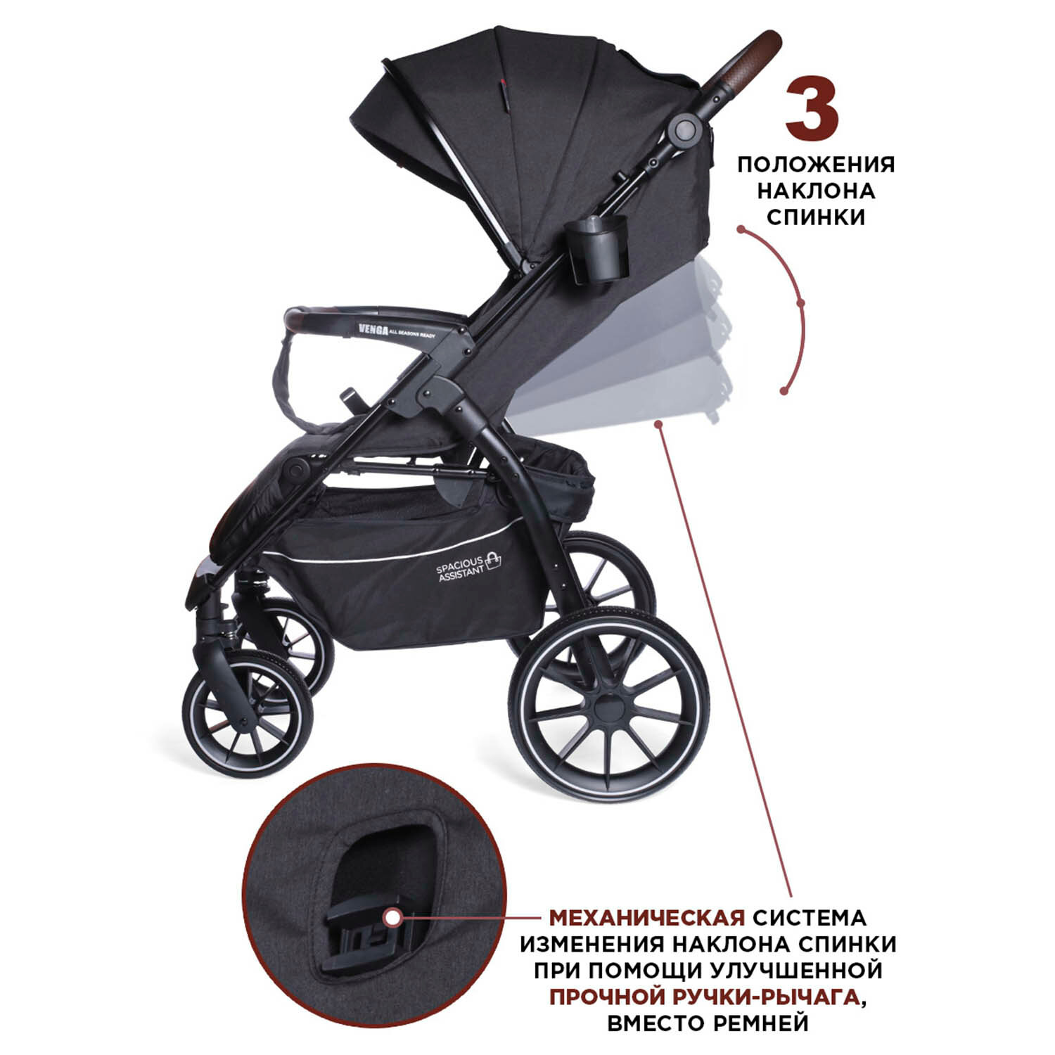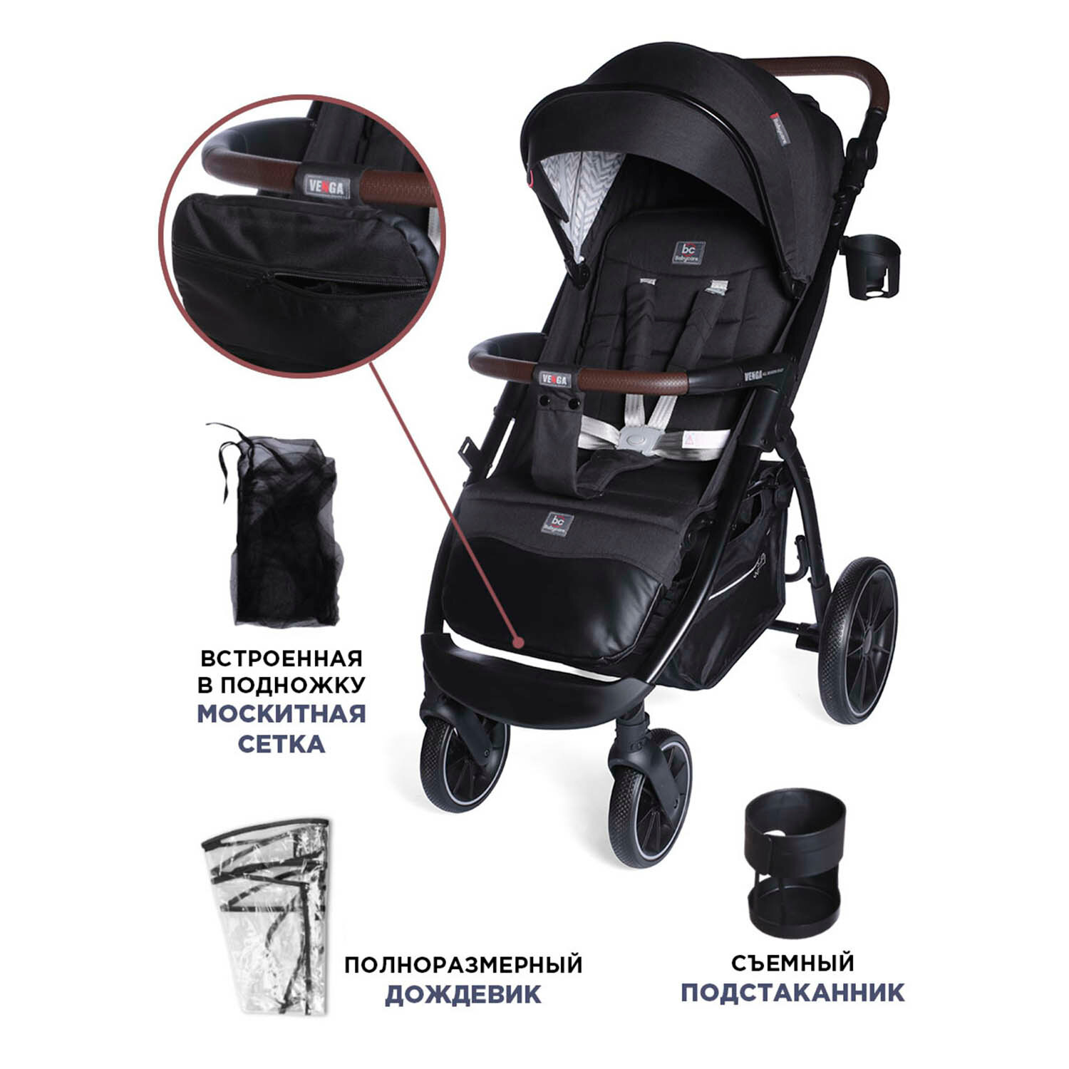 Коляска детская прогулочная Venga, всесезонная с накидкой для ног, большим капюшоном, полная комплектация Babycare, черный