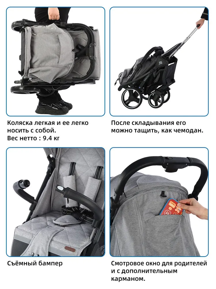 | Аксессуары в комплекте | антимоскитная сетка, бампер, дождевик, капюшон, муфта для рук, накидка на ноги, подстаканник, рюкзак, солнцезащитный козырек, сумка, сумка для хранения и переноски, Амортизатор, Вентилируемое окошко, Карман для принадлежностей, Корзина для вещей и покупок, Корзина для покупок, Подставка для ножек, Пятиточечные ремни, Ручка для переноски, Стояночный тормоз, Съемная обивка, Съемный бампер, Чехол |