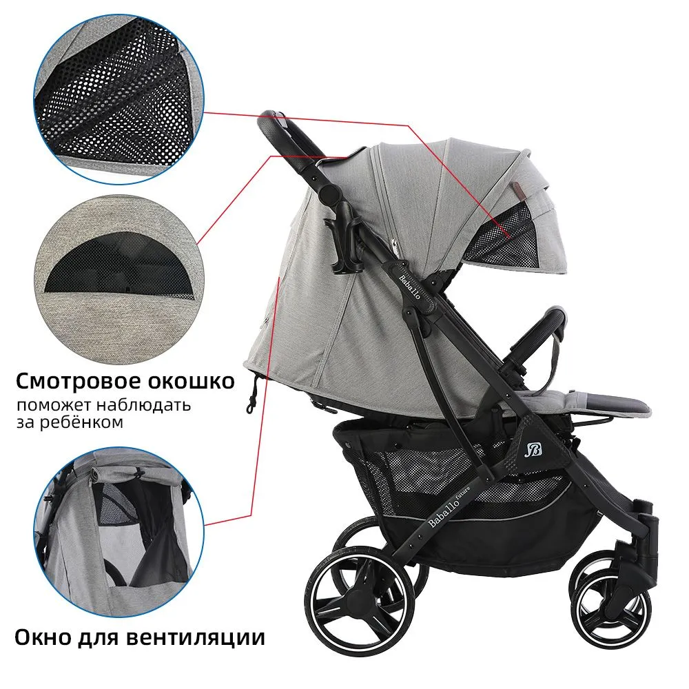 Прогулочная всесезонная коляска Baballo 2023, серый черная рама