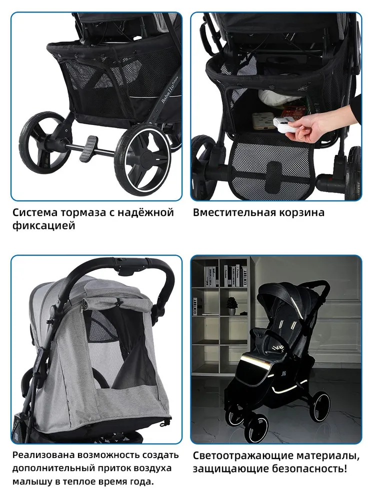 | Дополнительные опции | ручка/ремень для переноски / светоотражающие детали / съемный чехол / устойчивое положение в собранном виде / регулирется высота ручки |