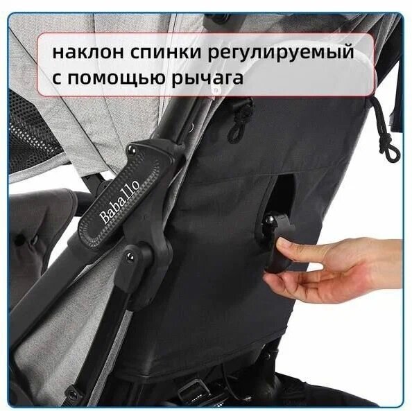 Детская прогулочная коляска Baballo future 2024, Бабало серый на черной раме, механическая спинка, сумка-рюкзак в комплекте