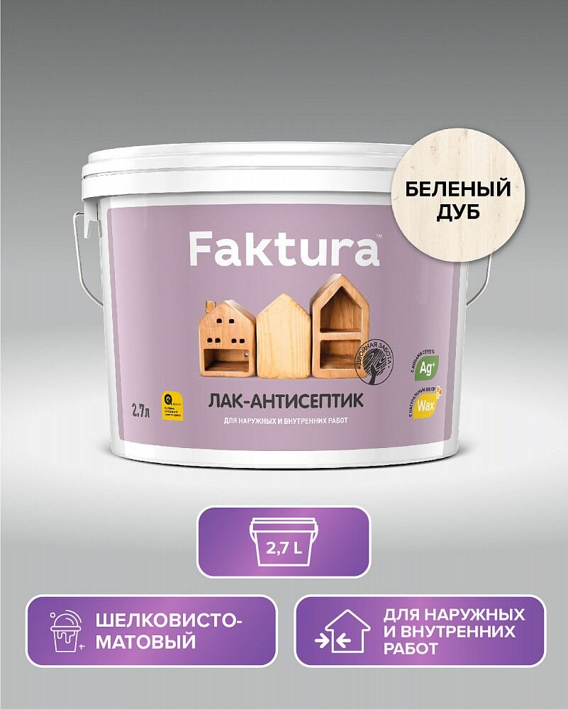 FAKTURA лак-антисептик водорастворимый с натуральным воском и ионами серебра, беленый дуб (2,7л)