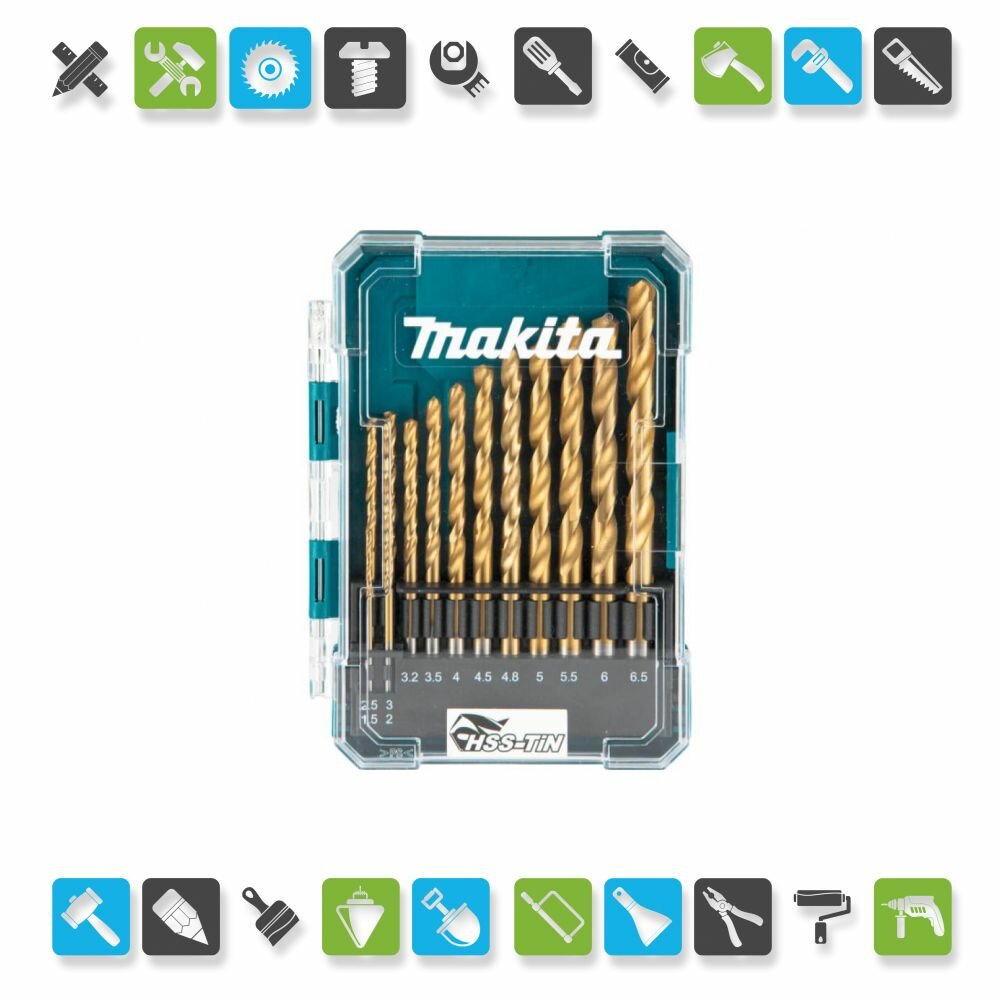 Набор сверл по металлу MAKITA HSS-TiN Economy, 13 шт. (1.5-6.5 мм, шаг 0.5 мм)