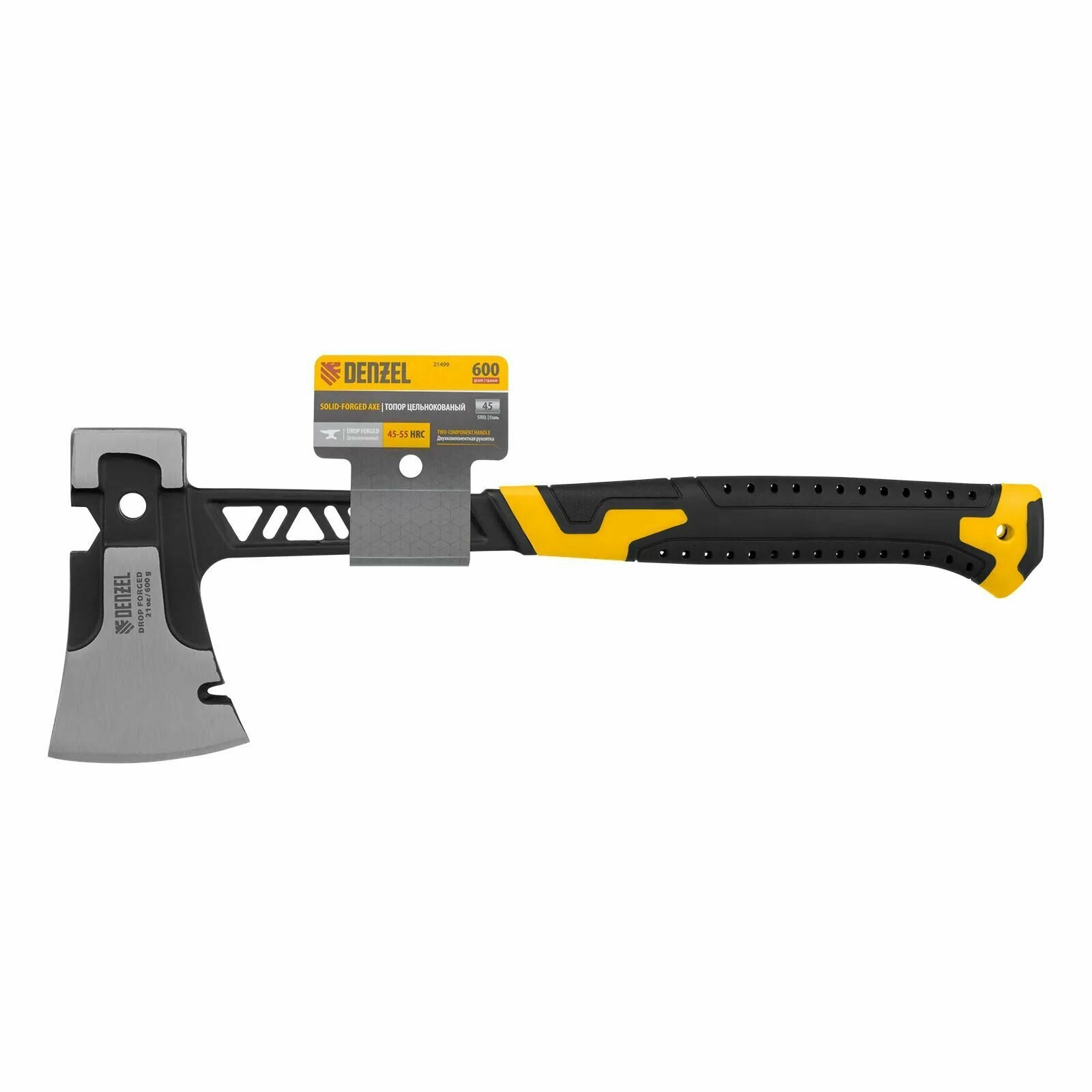 Топор цельнокованый 600 г DENZEL двухкомпонентная обрезиненная рукоятка 21499