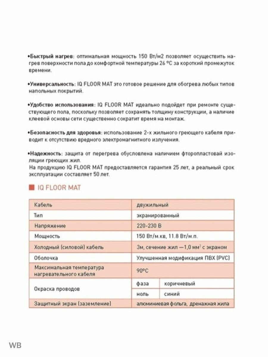 Теплый пол 1,0м² (150 Вт) IQWATT Греющий мат IQ FLOOR MAT 150 Вт/м. кв