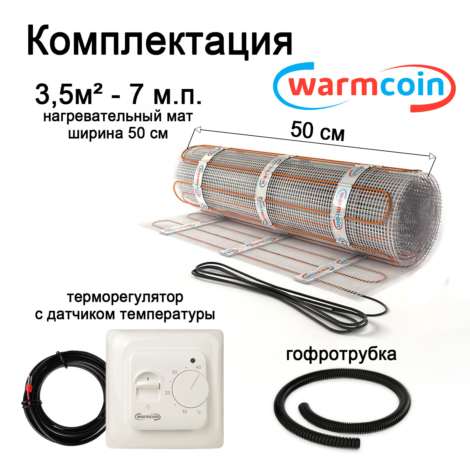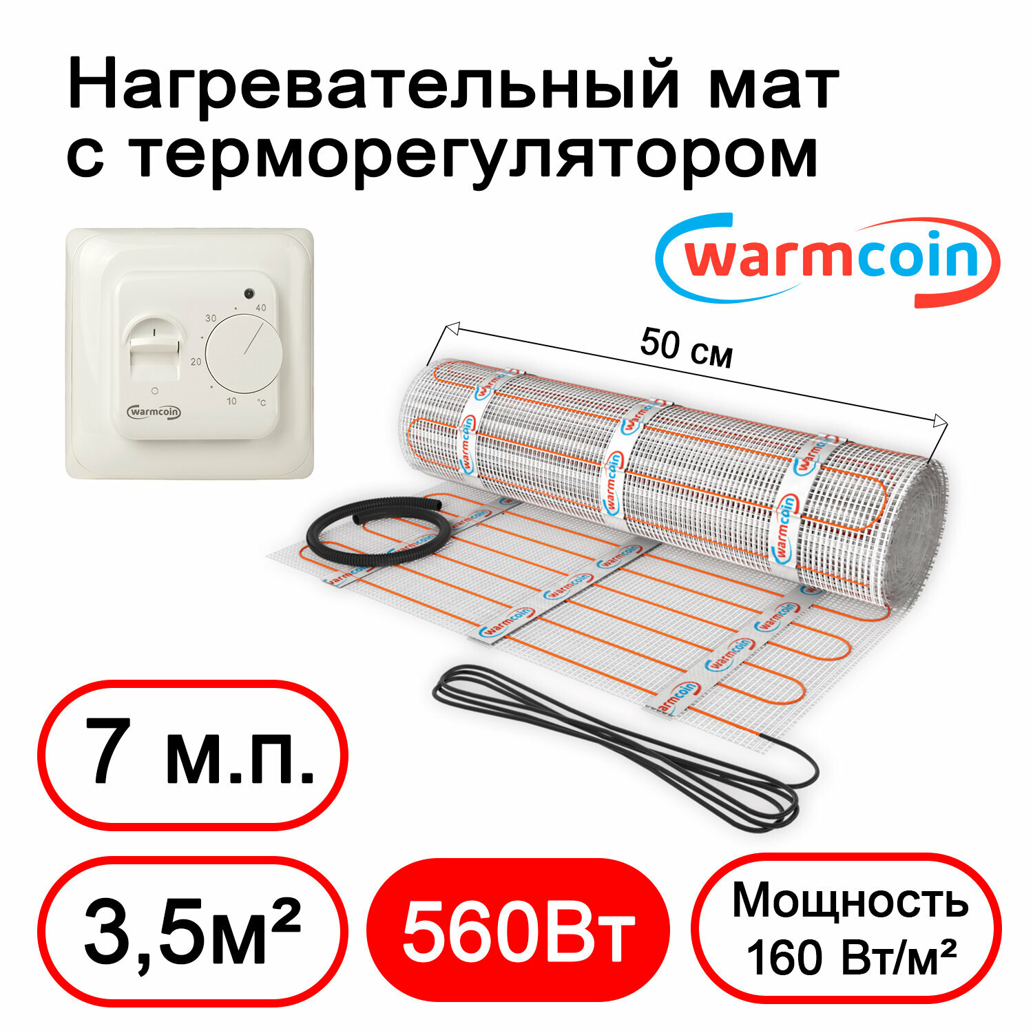 Теплый пол Warmcoin Экомат 3,5 м.кв. (0.5 х 7 м ) с термостатом