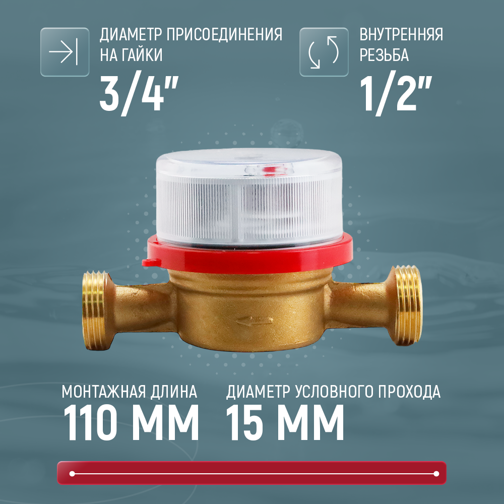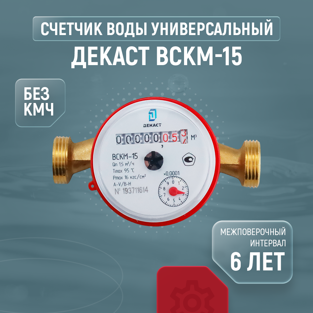 Счетчик воды универсальный Декаст ВСКМ-15 (110 мм, без кмч)