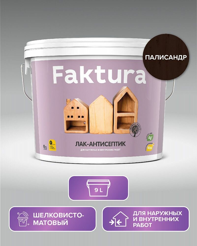 Лак-антисептик интерьерный Faktura шелковисто-матовый (9л) палисандр