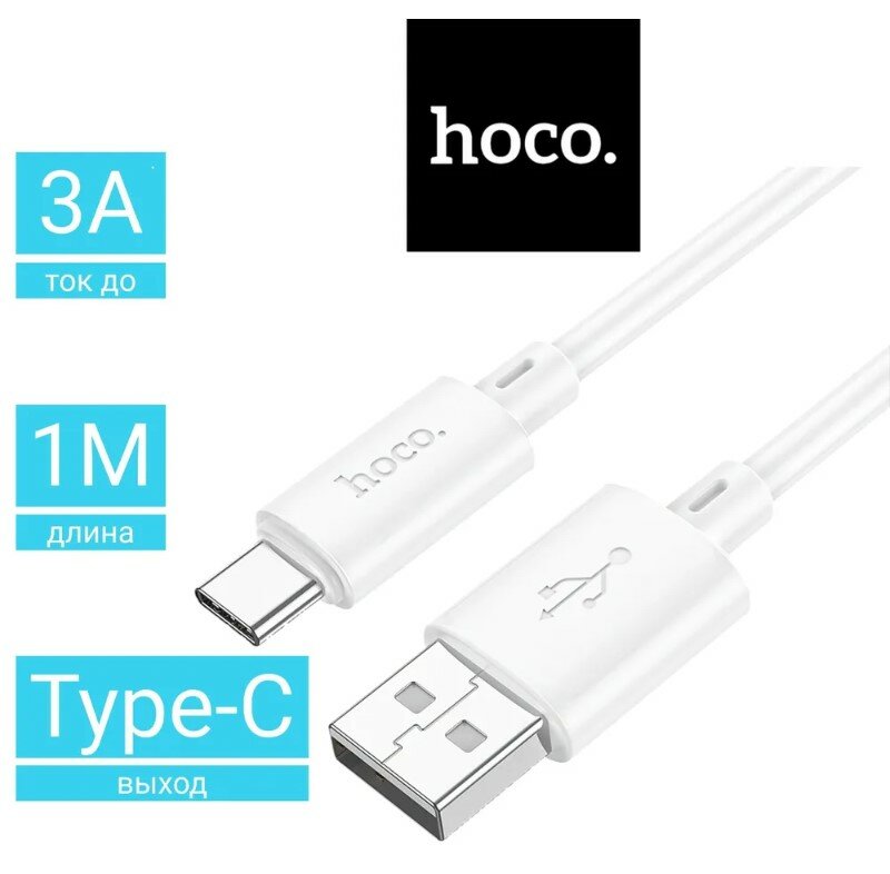 Кабель Hoco X88, провод для андроид, быстрая зарядка для телефона, USB Type-C, белый, длина 1м