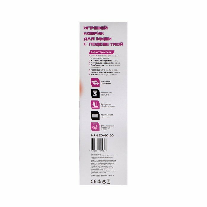 Коврик для мыши с подсветкой Gembird 800*300*3мм интересное: