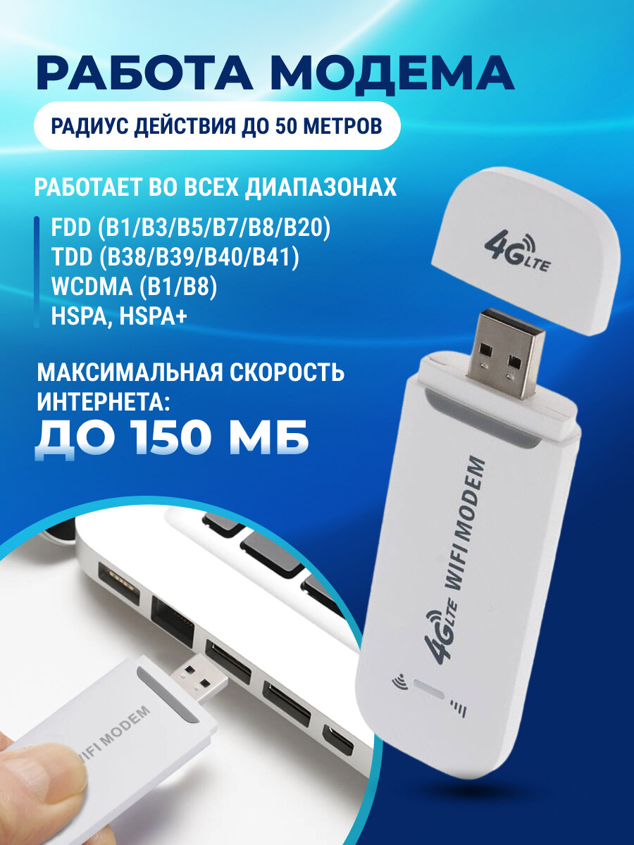 Беспроводной USB-модем Wi-Fi с точкой доступа 3G/4G для любого оператора, белый интересное: