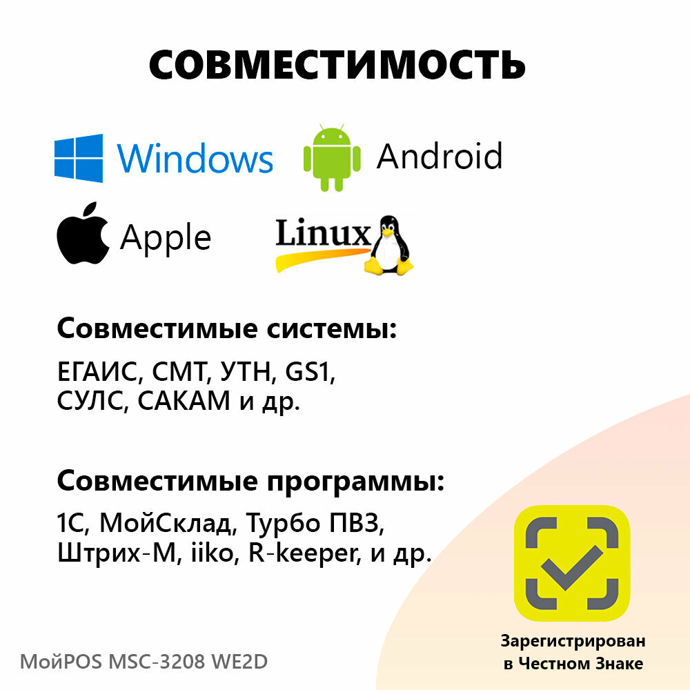Беспроводной сканер штрихкодов МойPOS MSC-3208 для маркировки ЕГАИС интересное: