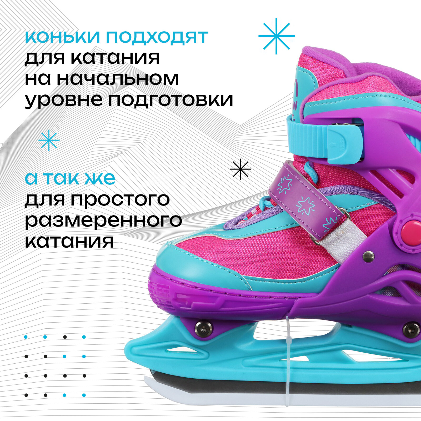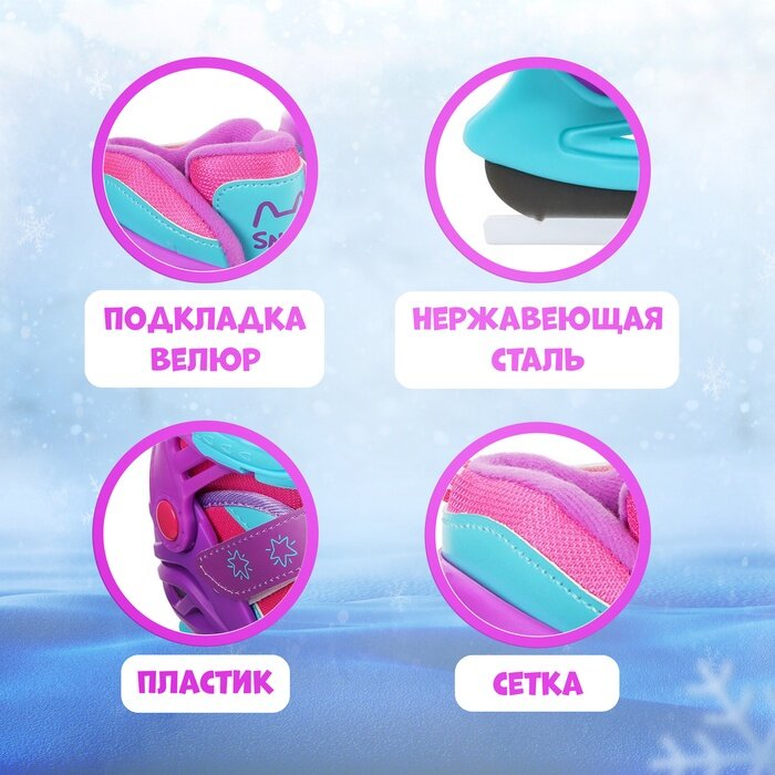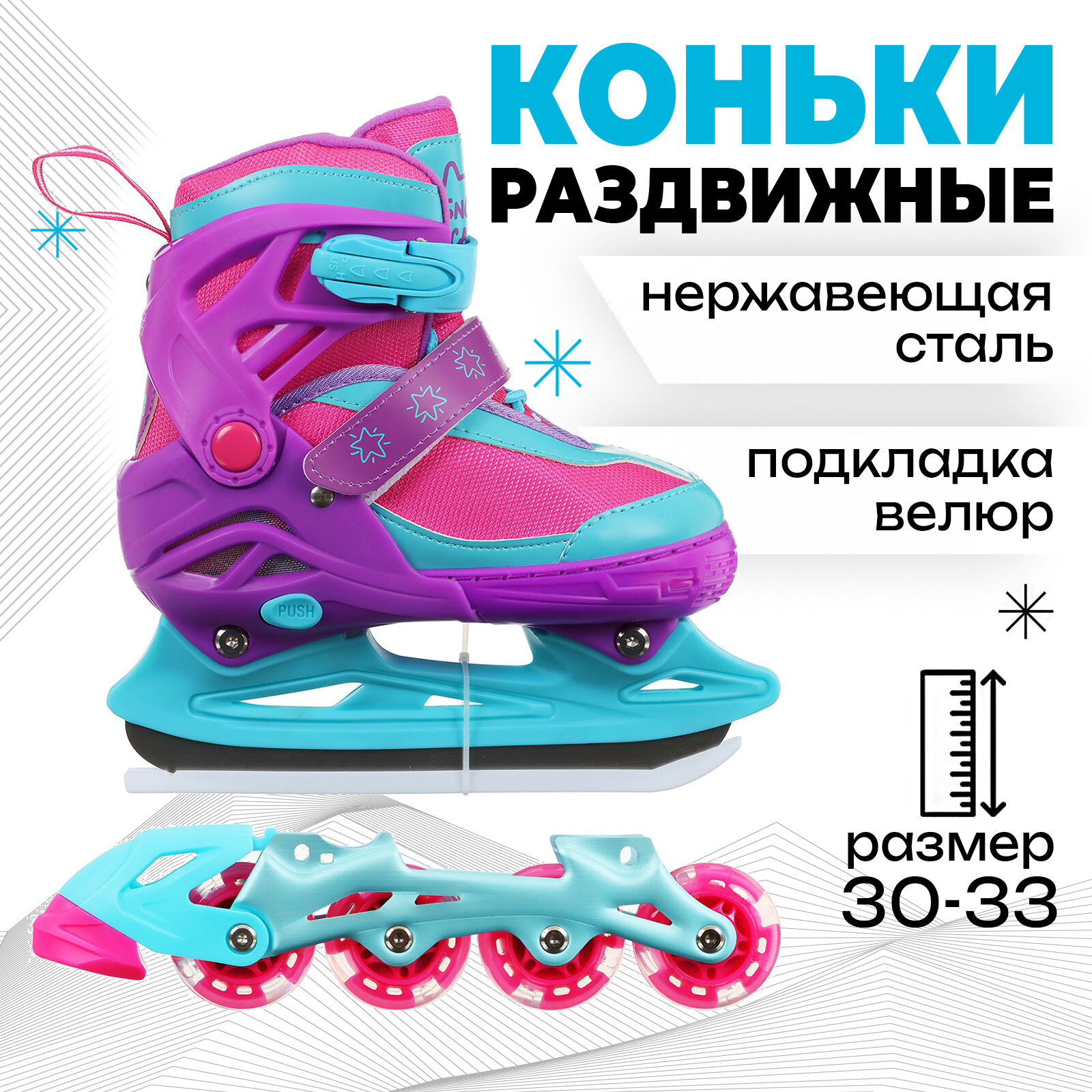 Коньки ледовые детские раздвижные Snow Cat, с роликовой платформой, р. 30-33, цвет розовый, голубой