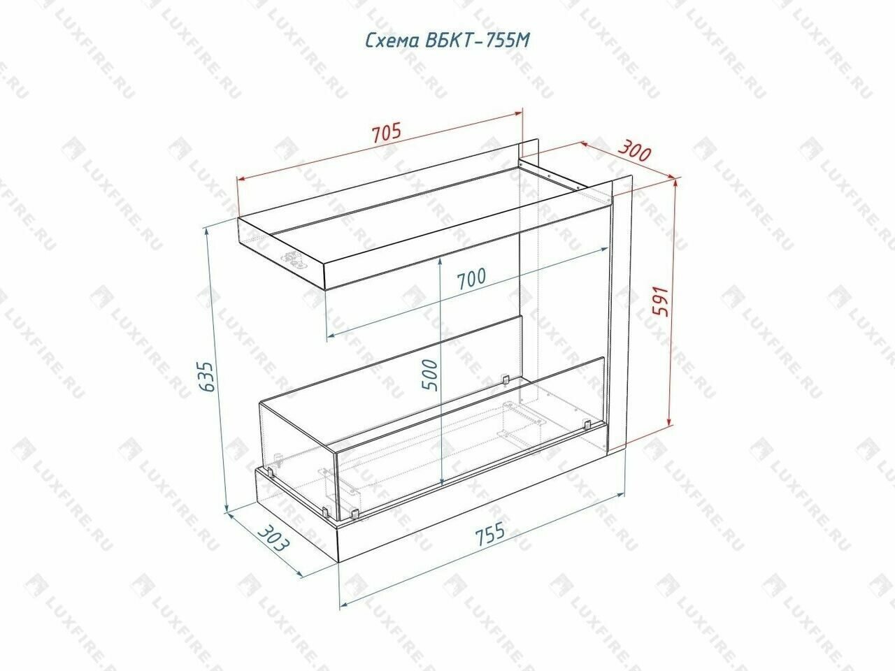 Встроенный биокамин Lux Fire Торцевой 755 М