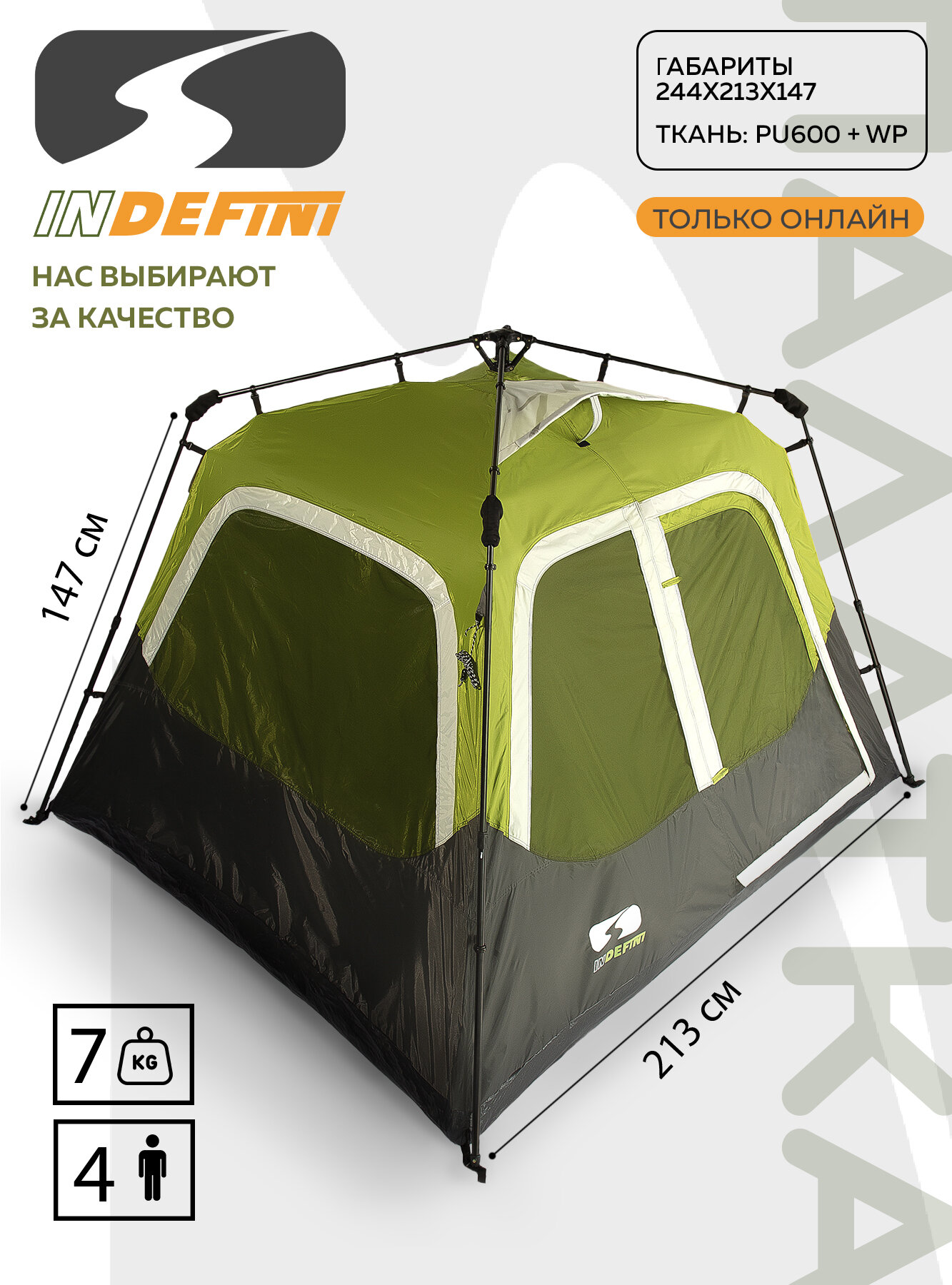 Купить Палатка туристическая 4 местная indefini автоматическая 244х213х147 3016WDT