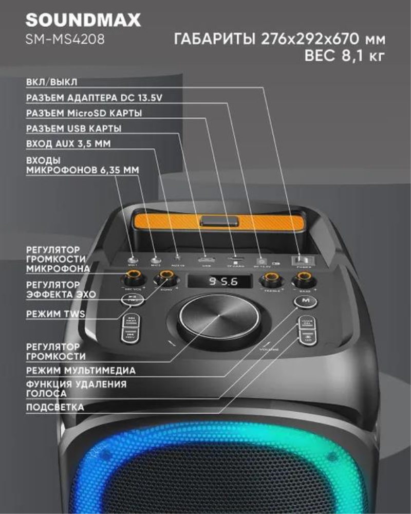 Музыкальный центр SOUNDMAX SM-MS4208 интересное: