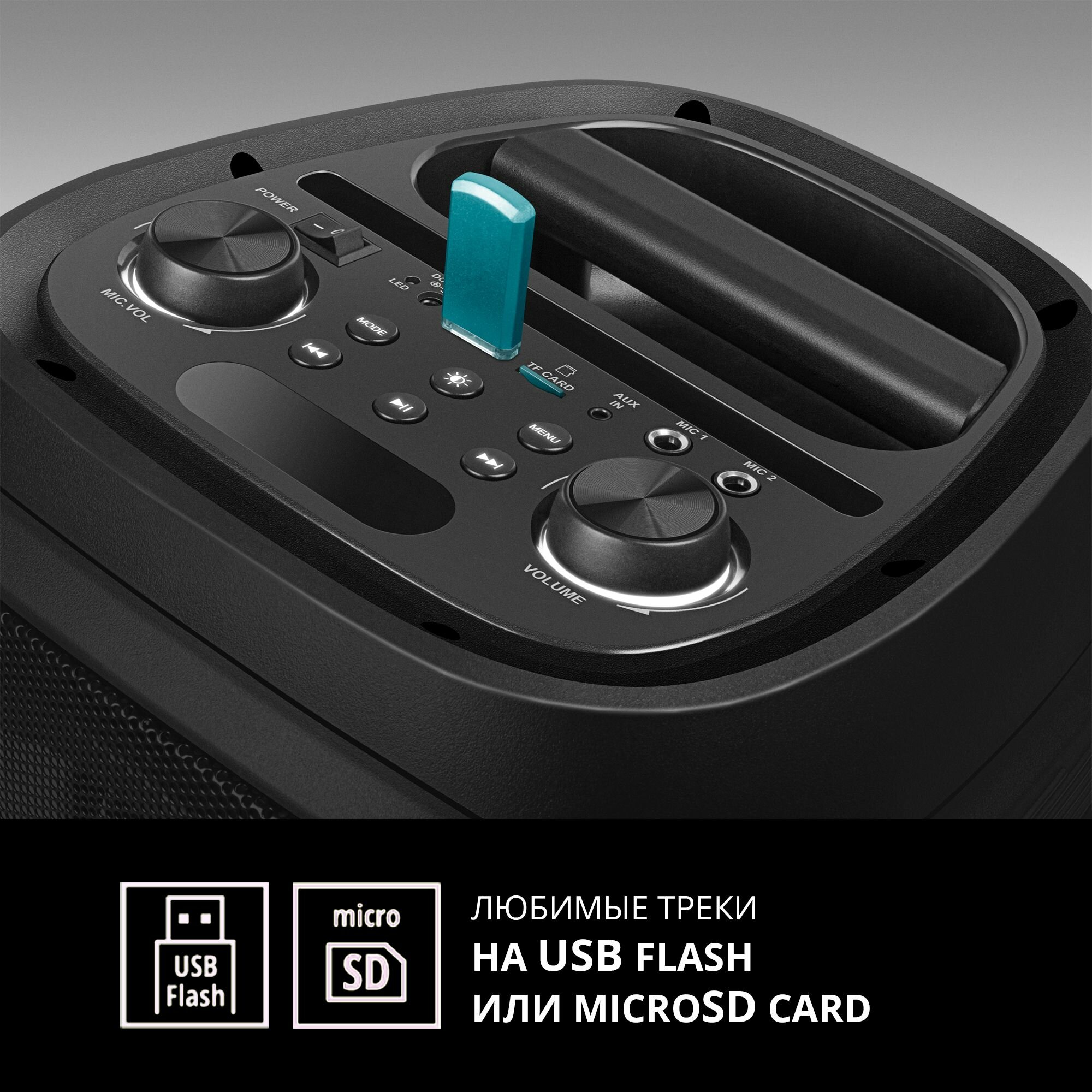 | Особенности | FM-радио / встроенный микрофон (функция HandsFree) / дисплей / поддержка microSD / световые эффекты / Пульт ДУ |