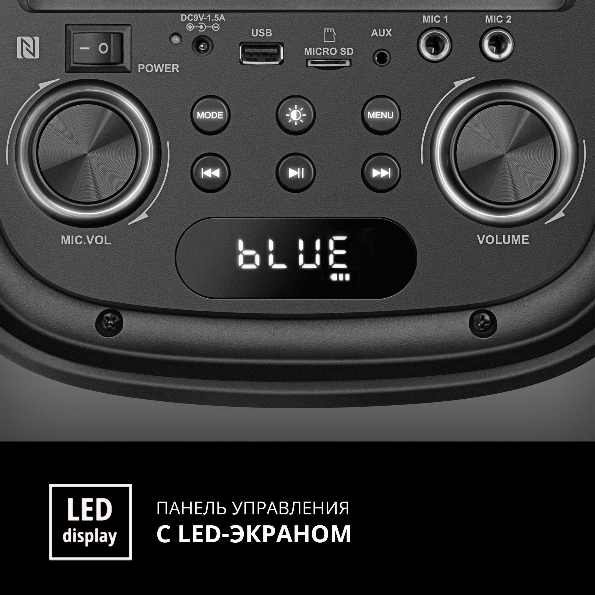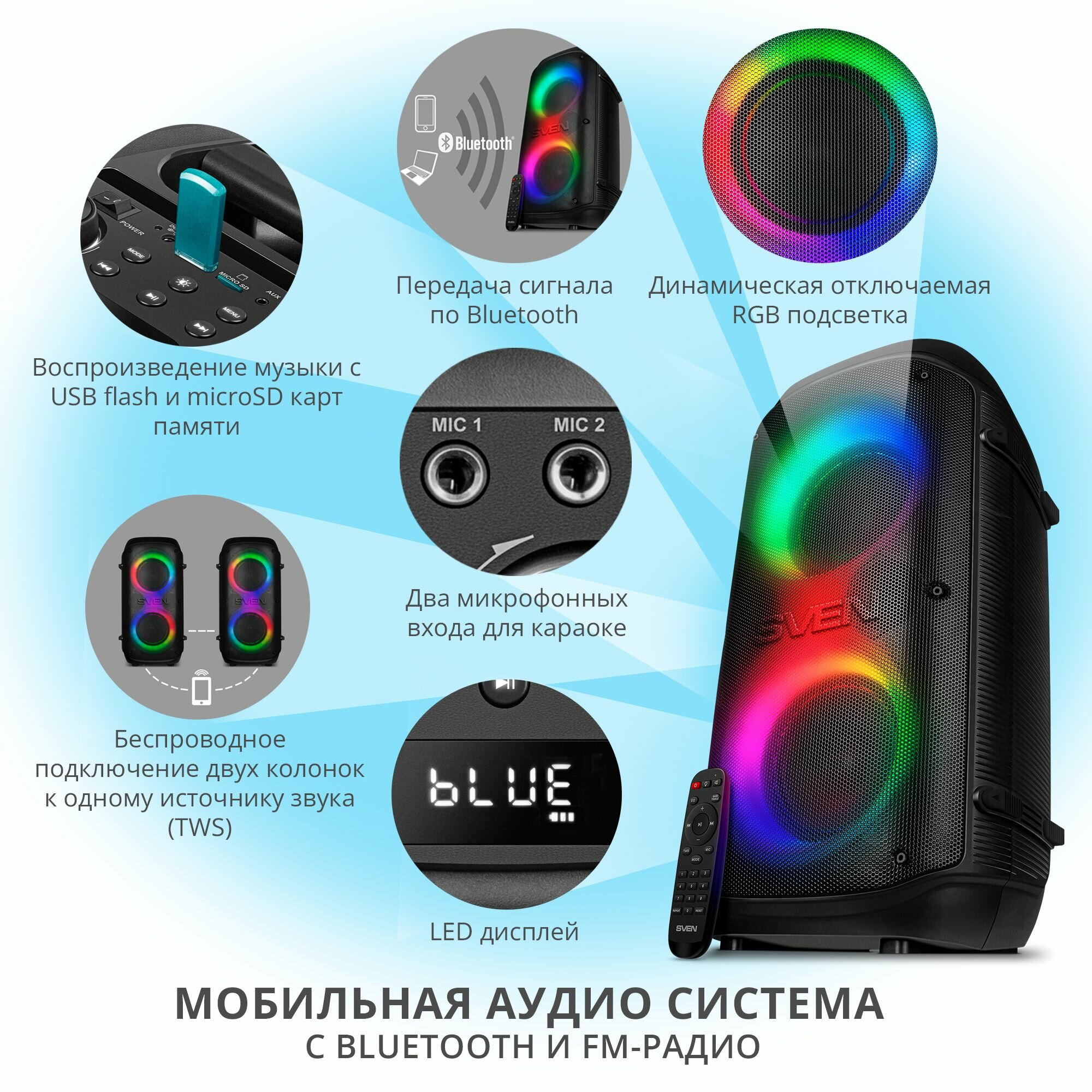 Портативная беспроводная Bluetooth колонка SVEN PS-800, 100 Ватт, TWS, FM-радио, USB, microSD, LED-дисплей, 2х4400мА*ч