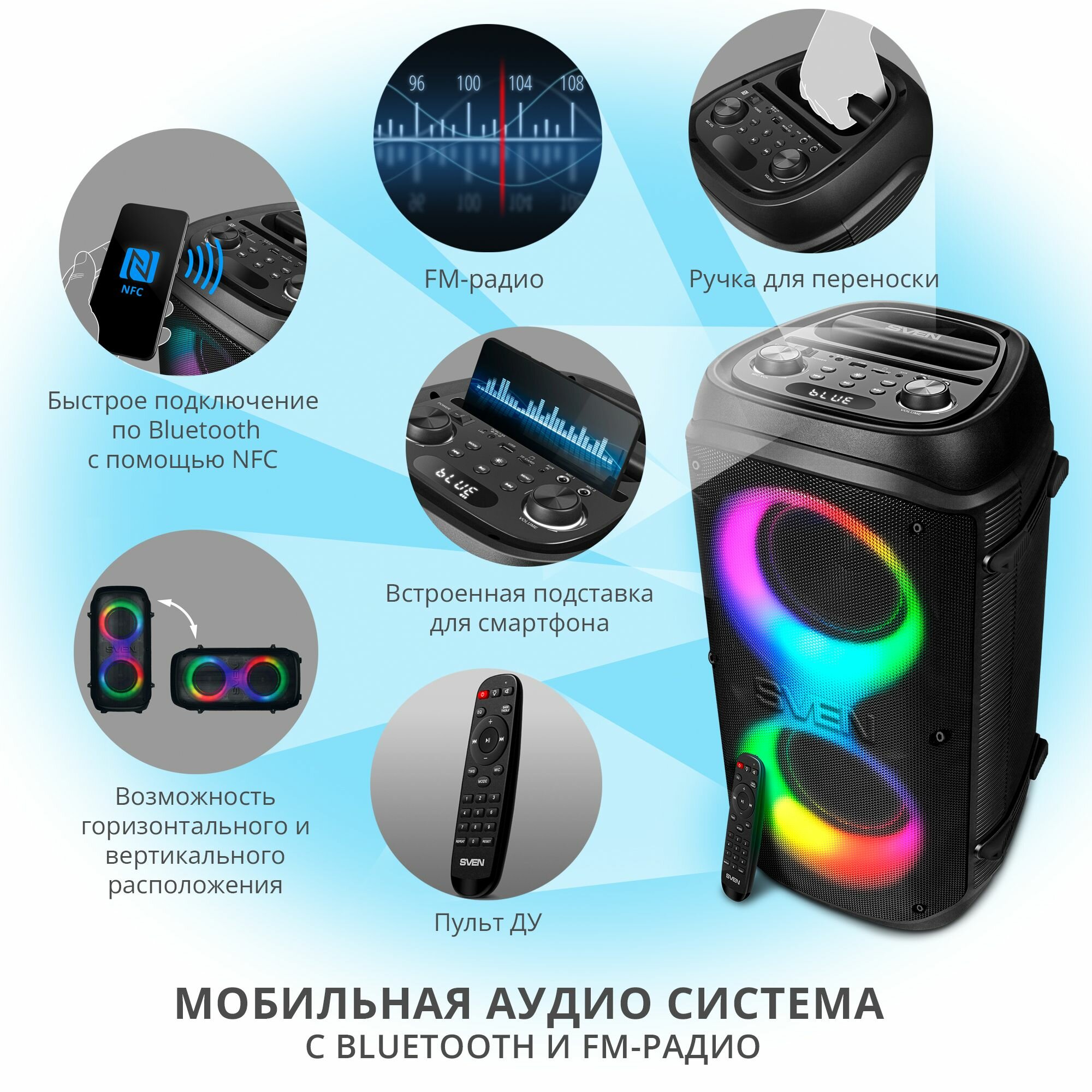 Портативная акустика SVEN PS-800, 100 Вт, черный
