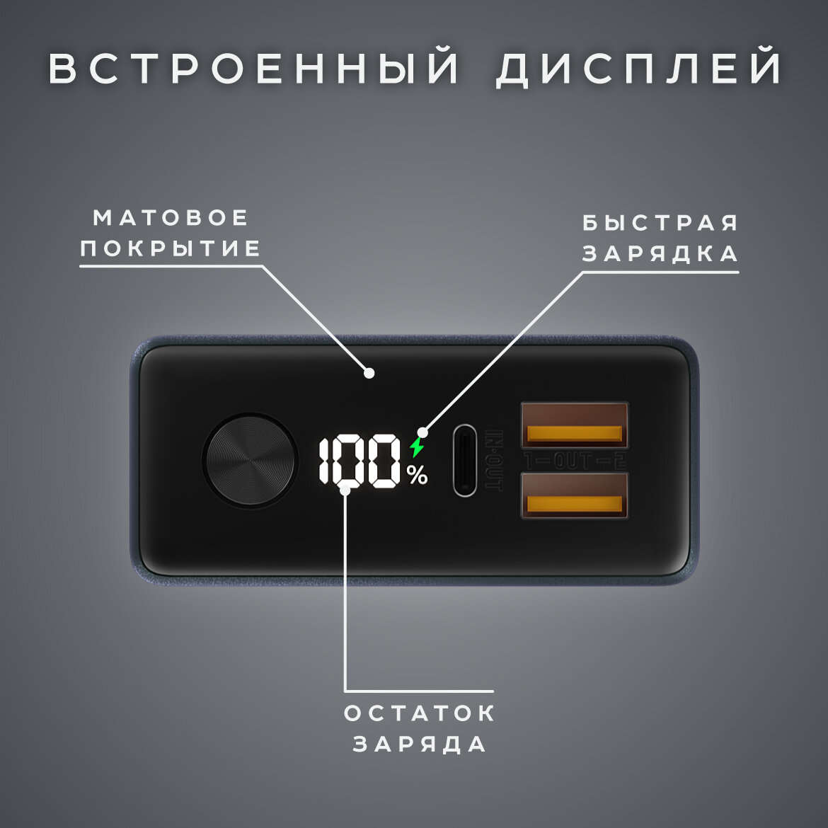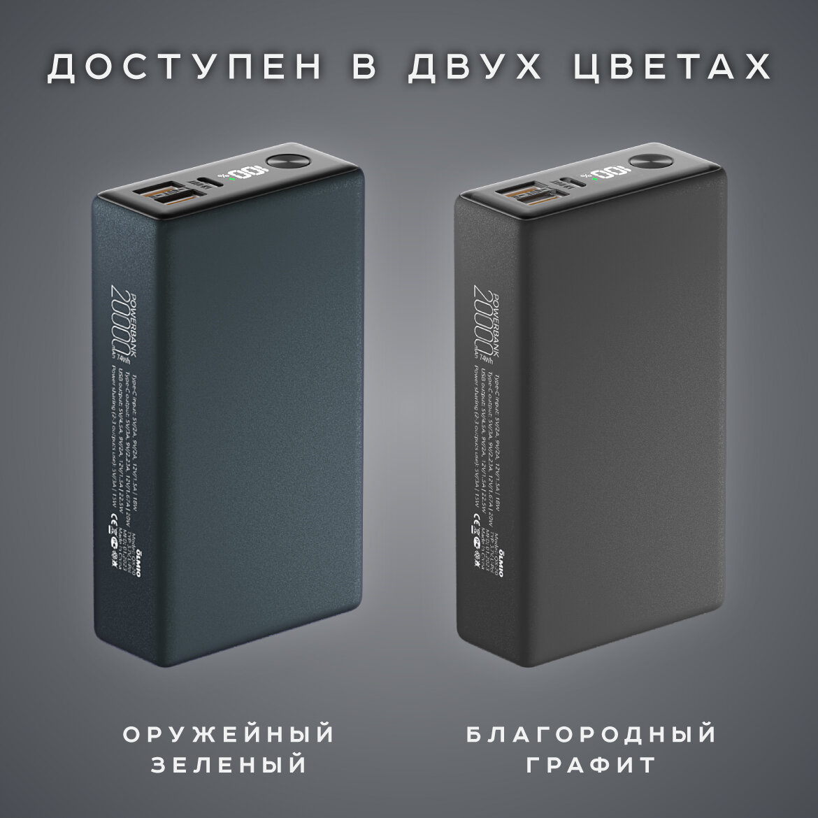 Внешний аккумулятор OLMIO QX-20 20000mAh,22.5W,QuickCharge3.0/PowerDelivery, LCD, т-зеленый, 044458 интересное: