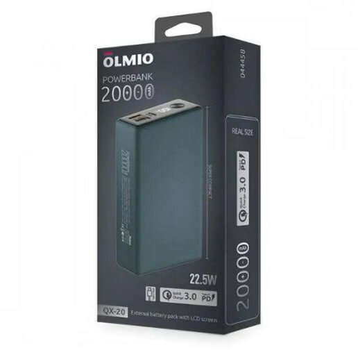 Купить Внешний аккумулятор OLMIO QX-20 20000mAh,22.5W,QuickCharge3.0/PowerDelivery, LCD, т-зеленый, 044458