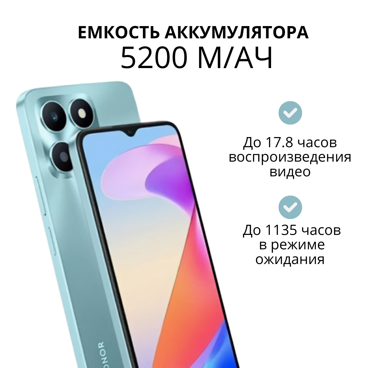 Смартфон HONOR X6A 6/128 ГБ, 2 nano SIM, Cyan Lake
