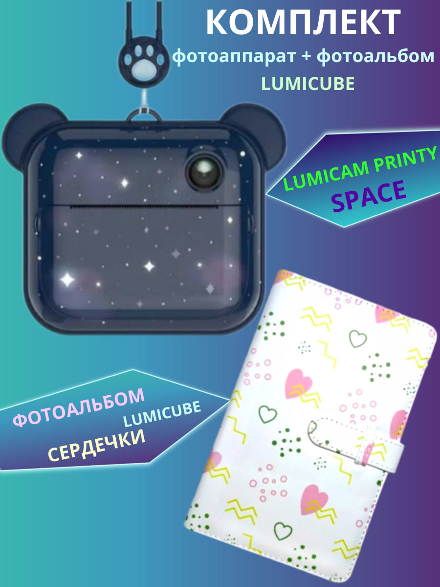 Купить Комбо: Фотоаппарат моментальной печати LUMICAM PRINTY DK04 space + Альбом для фотографий - Сердечки
