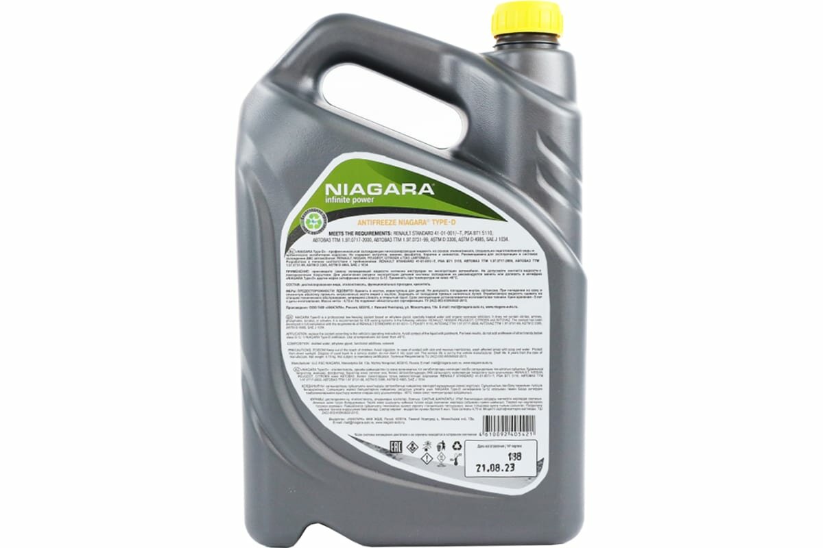 NIAGARA Жидкость охлаждающая Антифриз Type-D 40 (желтый) 5 кг 013001004059 интересное:
