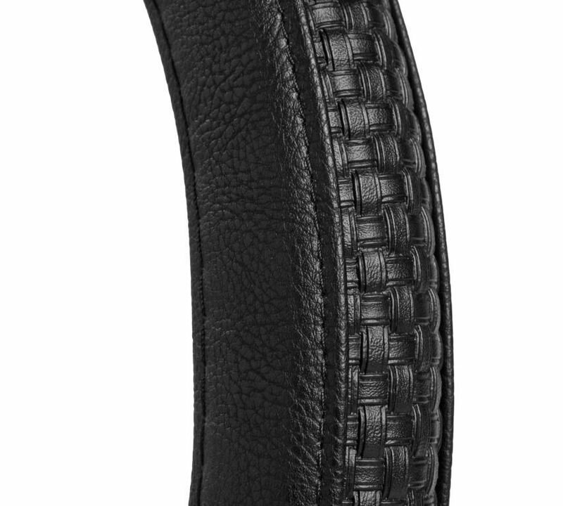 Оплетка на руль комбинированная гладкаярельефная кожа черная 3739 смМ AWC-RS-14M