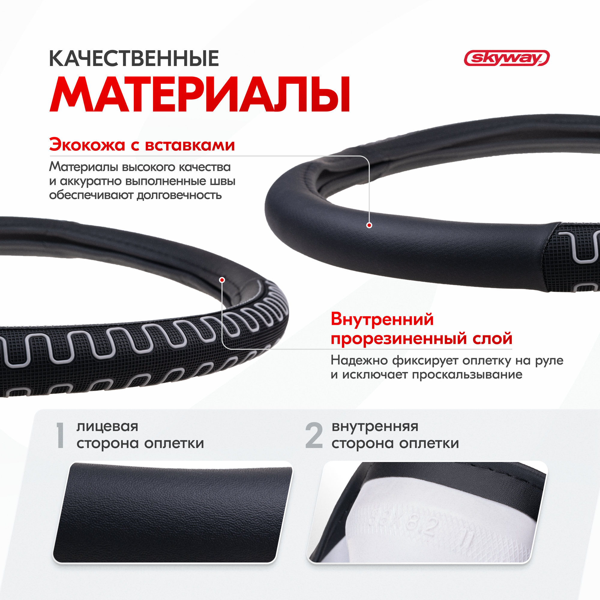 Оплетка на руль Top-12 SKYWAY M (37-39) серый экокожа, S01102501