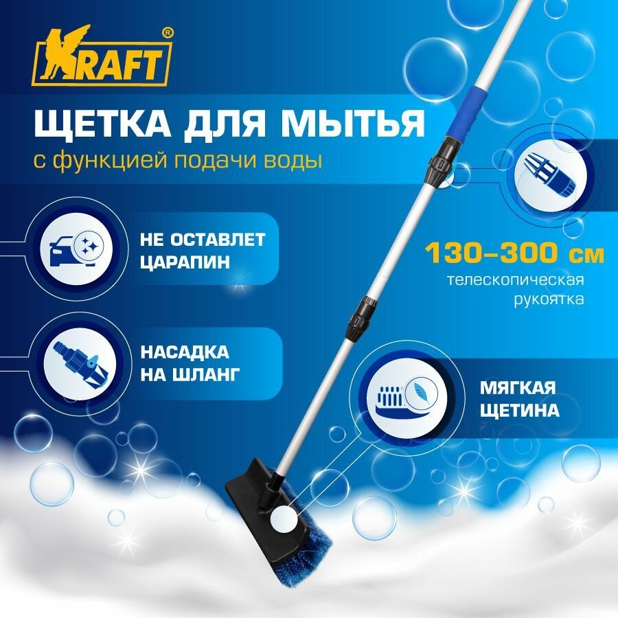 Щетка для мытья а/м (25 см) "KRAFT" (с насадкой на шланг, телескоп. ручка 3 м.)