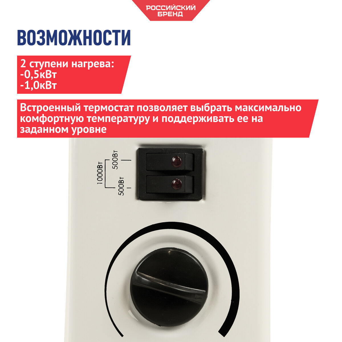 Конвекторный обогреватель СОЮЗ 500/1000Вт, стич, мех.термостат