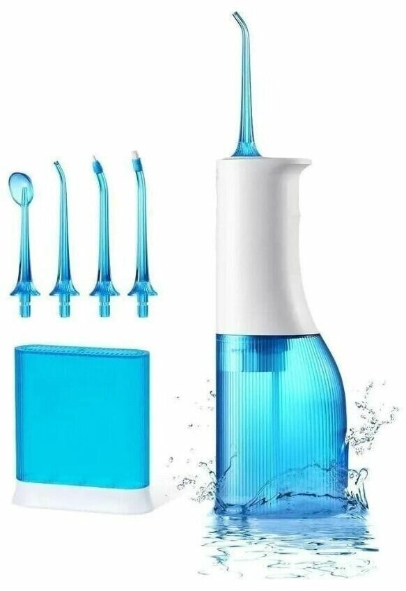 Портативный ирригатор для полости рта, 4 насадки, резервуар 200 мл, бирюзовый/оранжевый
