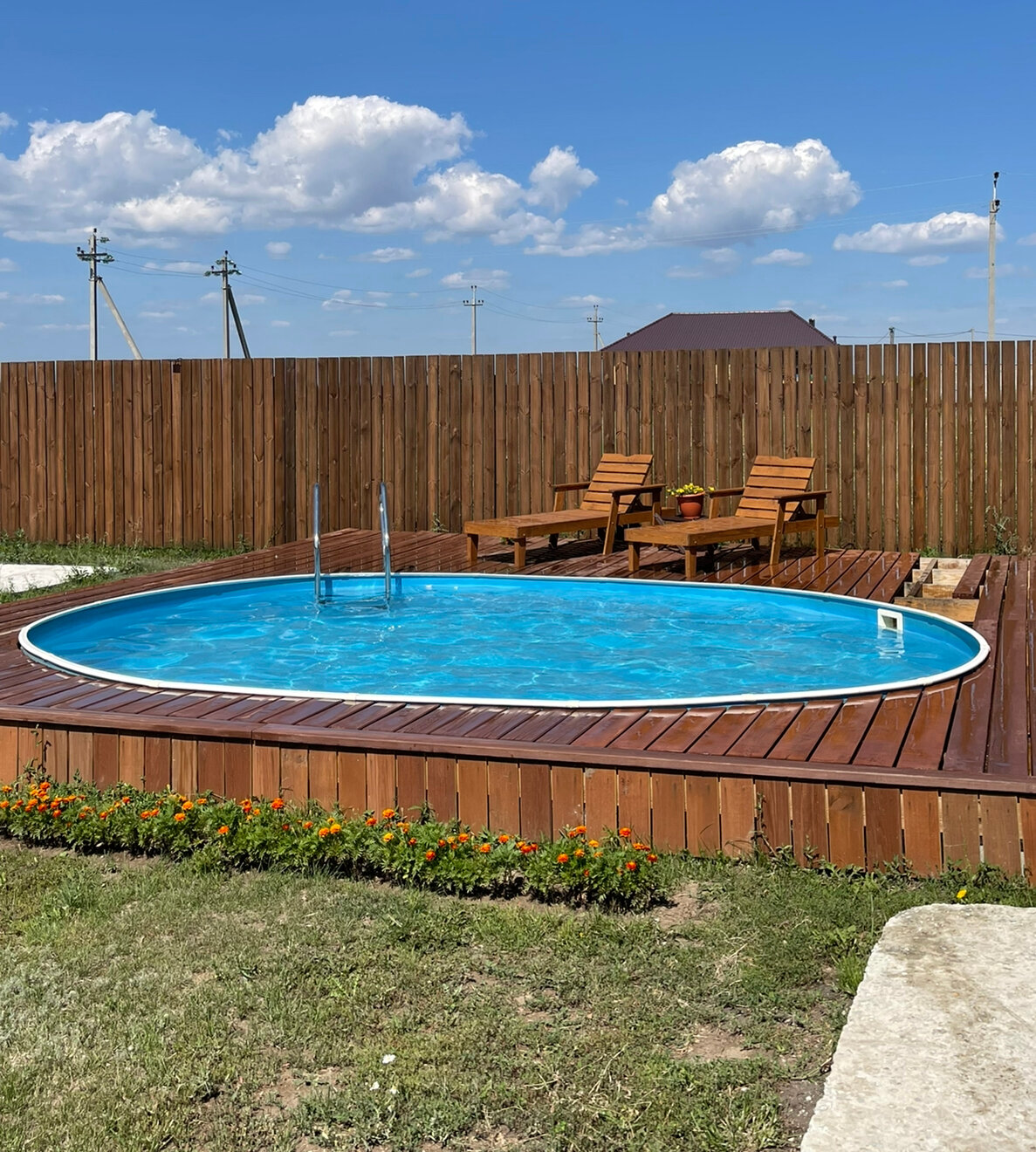 | Минусы: | Нет насоса в комплекте, надо отдельно покупать стены подпорные |