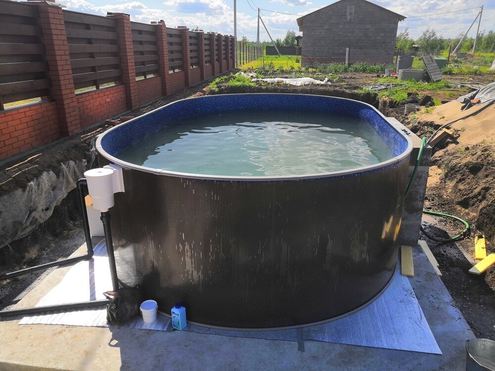 | Минусы: | Нет насоса в комплекте, надо отдельно покупать стены подпорные |