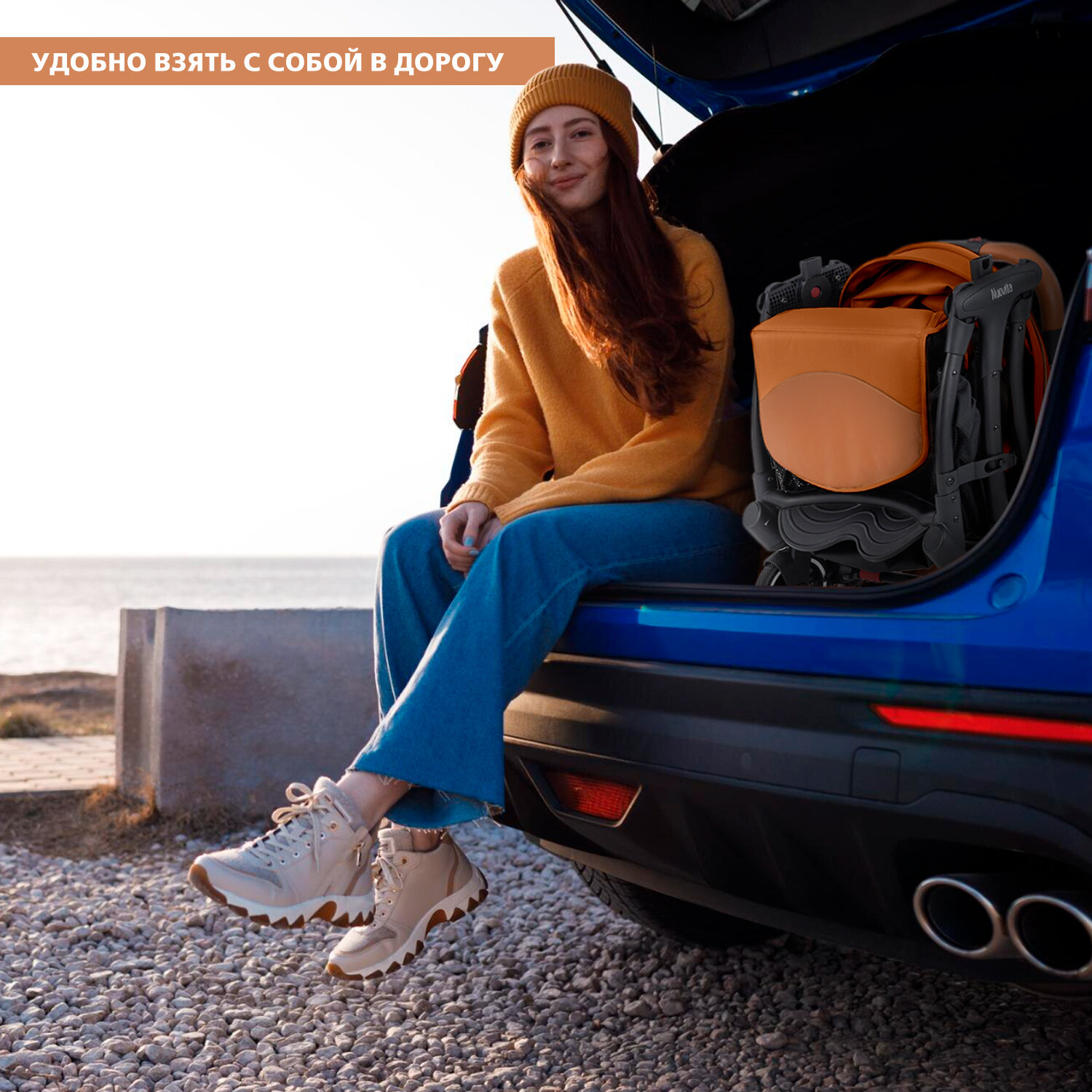 Коляска прогулочная Nuovita Jazz 7-36 месяцев, всесезонная складная детская, с поворотными колесами и амортизацией, легкая для путешествий (Zucca/Тыква)